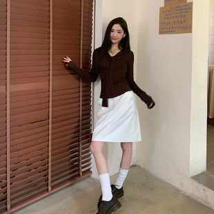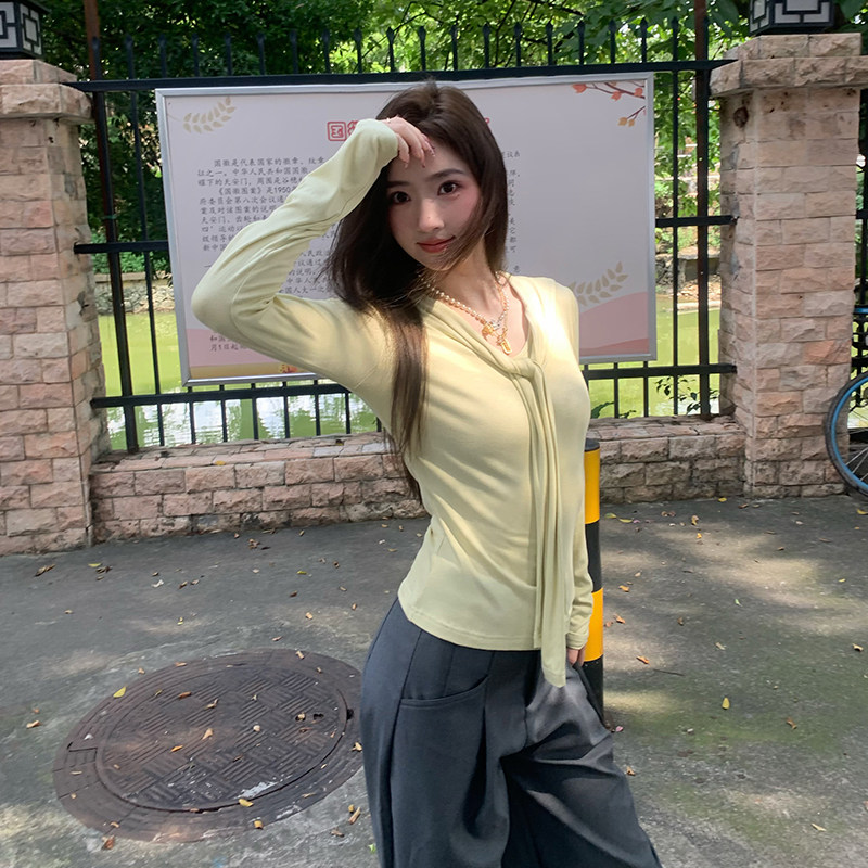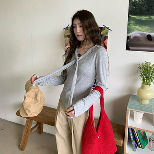 t恤女秋设计感纯欲上衣 橘子树在哪儿韩系绑带披肩长袖 限时价