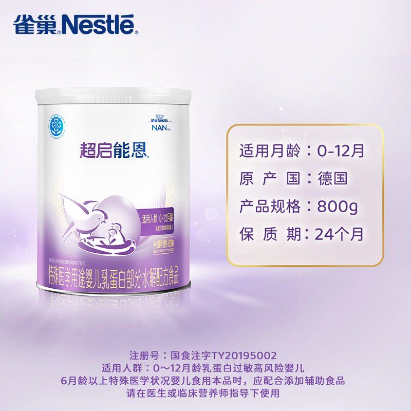 雀巢超启能恩1特殊医学用途婴儿乳蛋白部分水解配方食品800g 6罐
