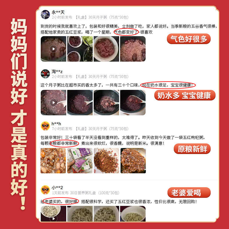 月子餐30天食材营养粥产后套餐恢复月子汤42天产妇五谷杂粮养生粥