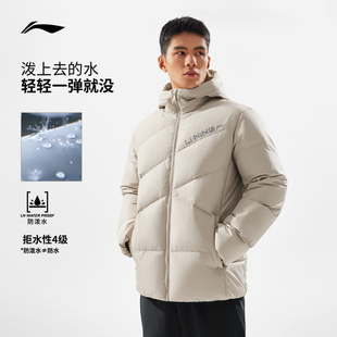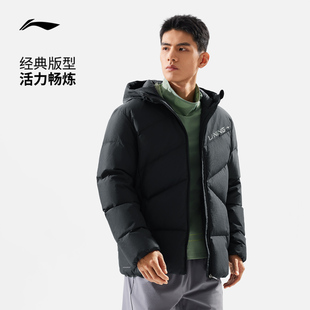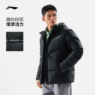 衣服保暖鸭绒上衣连帽防风加厚运动外套男 短款 李宁羽绒服男士 冬季