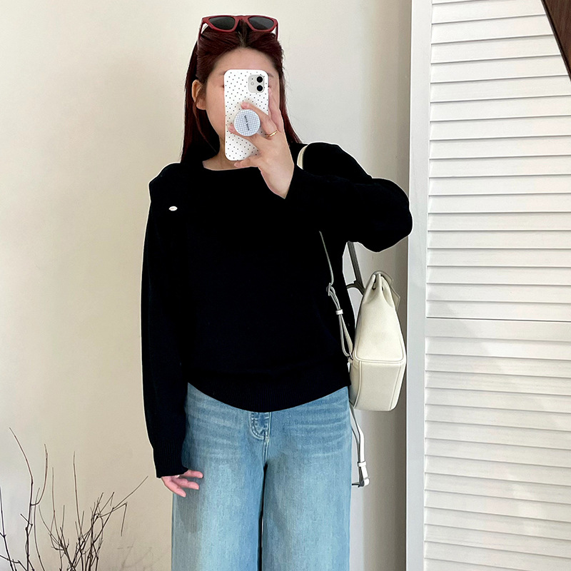 胖mm宽松针织衫 设计感气质一字领上衣25秋款 女23310乃粒 女装 大码