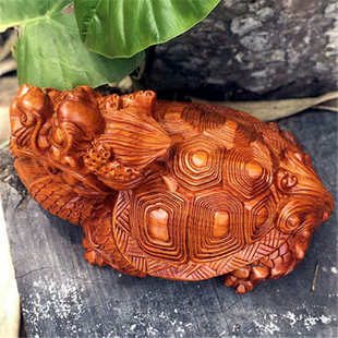 百茂木雕风十二生肖巳蛇圆宝办公室桌面小摆件家居装 饰品汽车用品