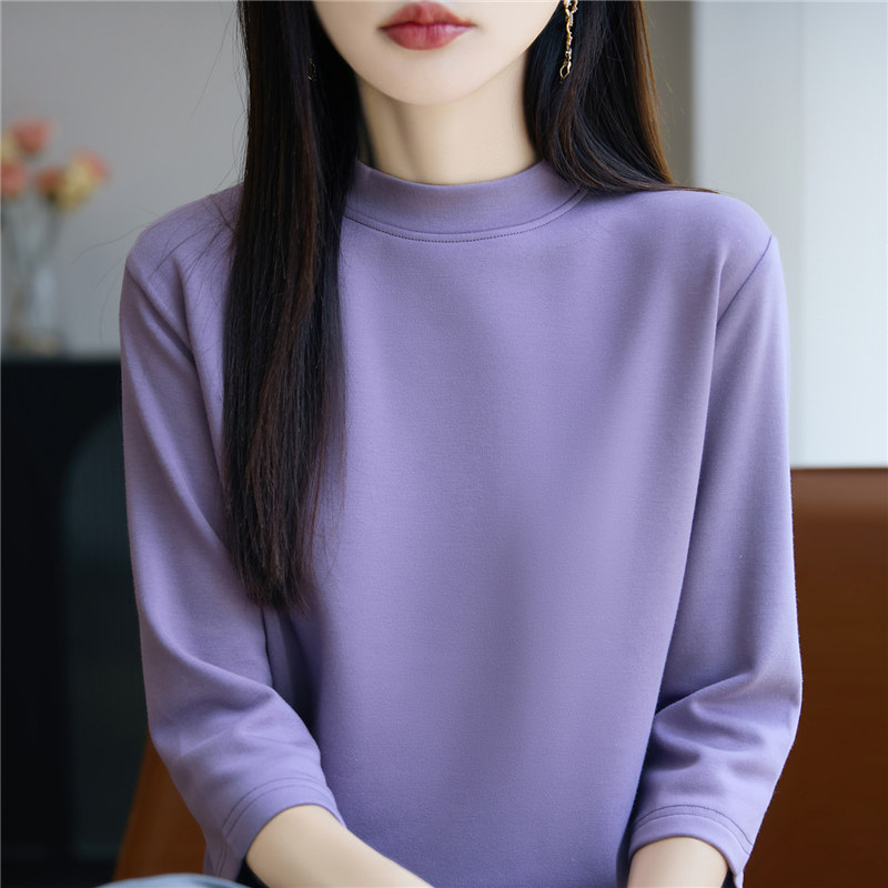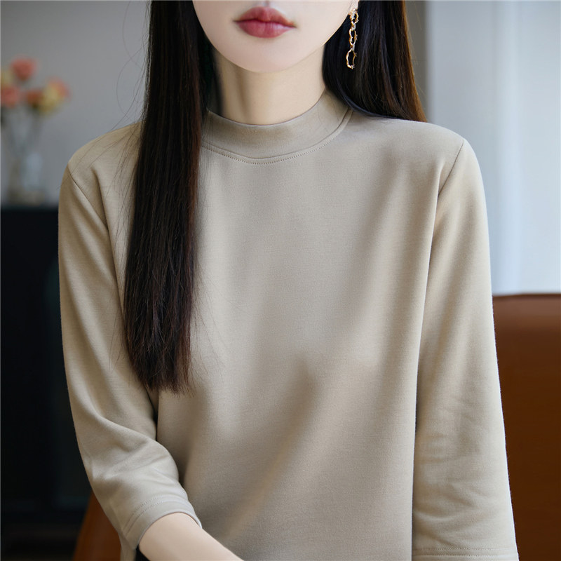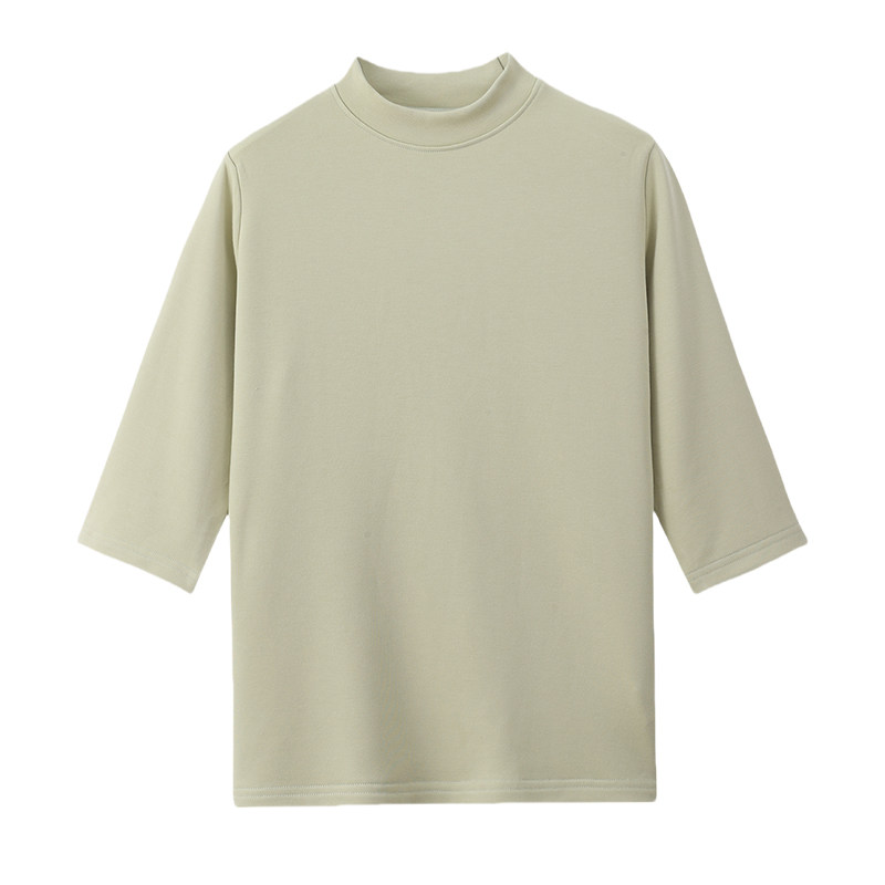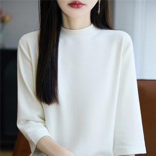 保暖打底衫 宽松显瘦立领短袖 上衣 t恤女七分袖 纯棉磨毛半高领中袖