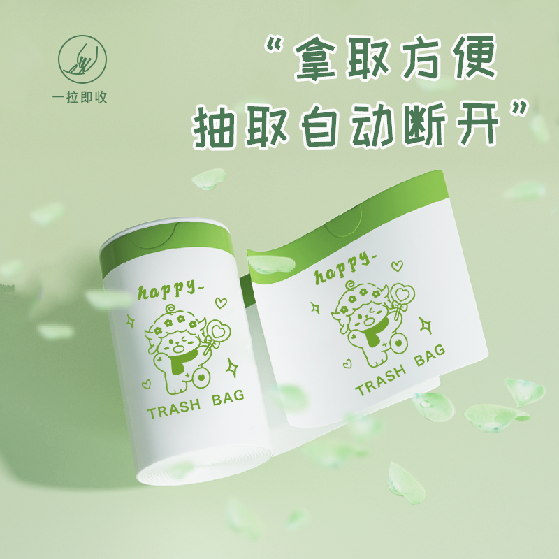 固成迷你垃圾袋小号手提式 一次性加厚桌面 自动收口家用背心抽绳款