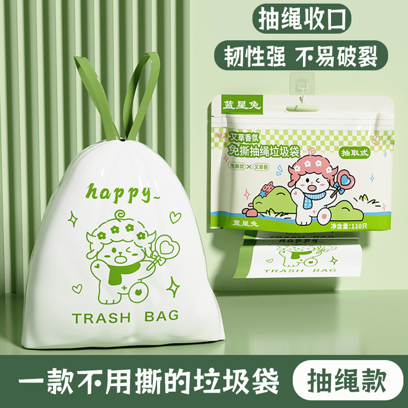 青崎可降解拉抽绳垃圾袋家用加厚手提式 厨房环保免撕自动收口大号