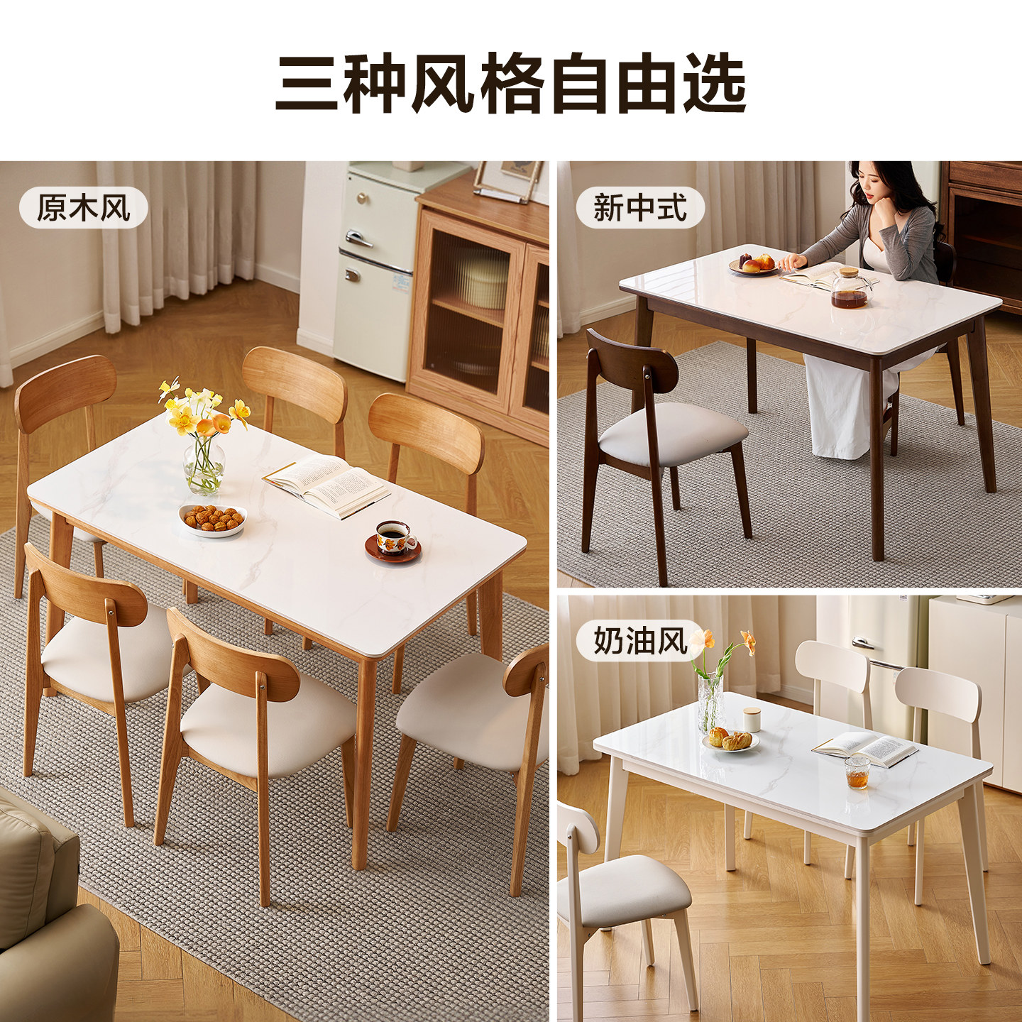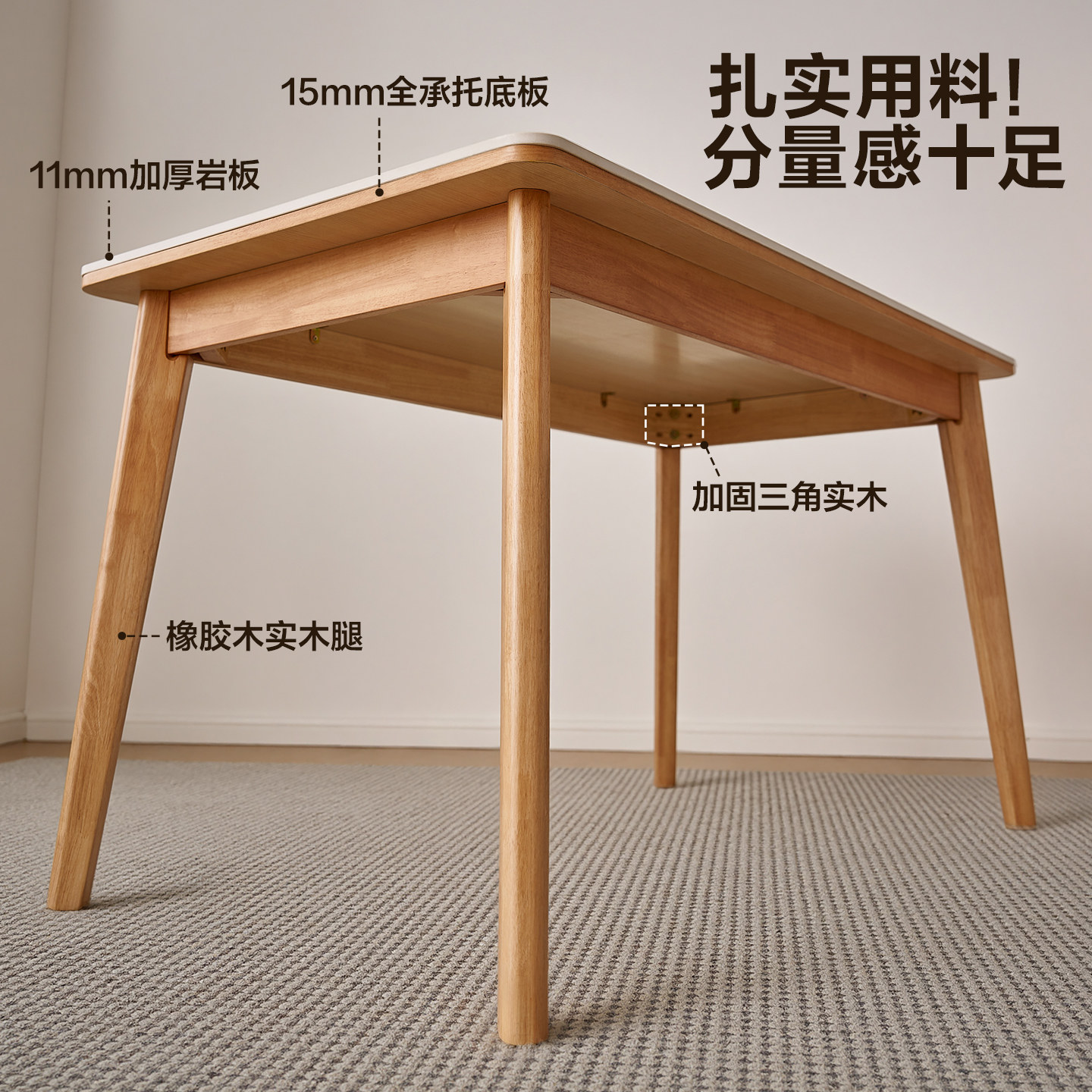 全友家居北欧风2025新款 客厅岩板餐桌家用小户型长方形实木脚饭桌