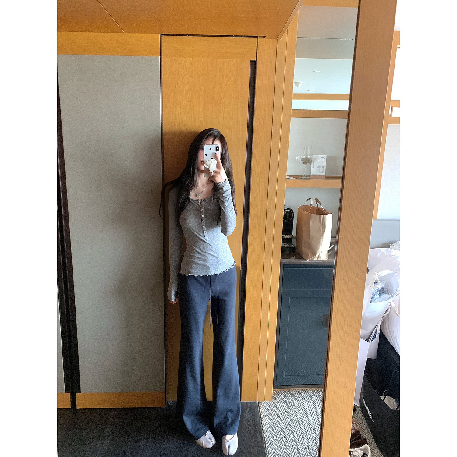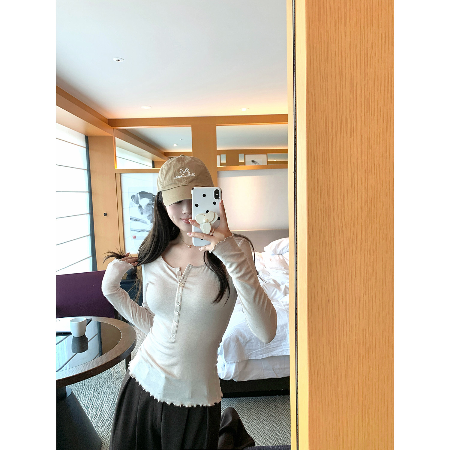 T恤新品 现货 长袖 人生bi入天丝羊毛亲肤高弹花边下摆打底衫 AHY