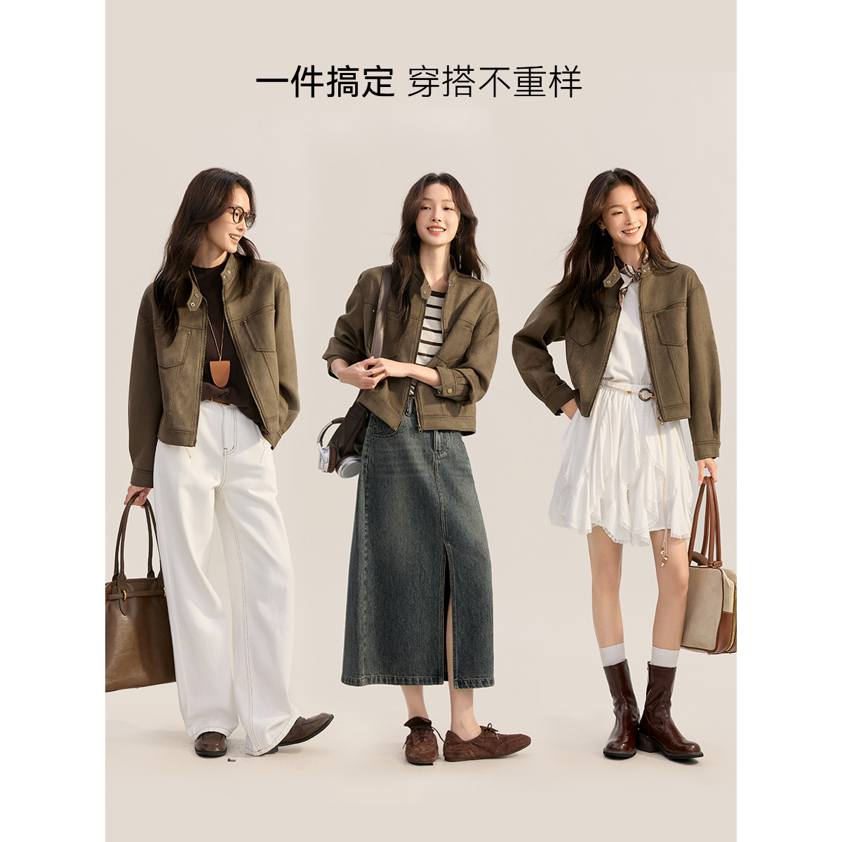 罗蒙中老年干部装 加棉立领爸爸翻领行政夹克羽绒外套 2025秋冬短款