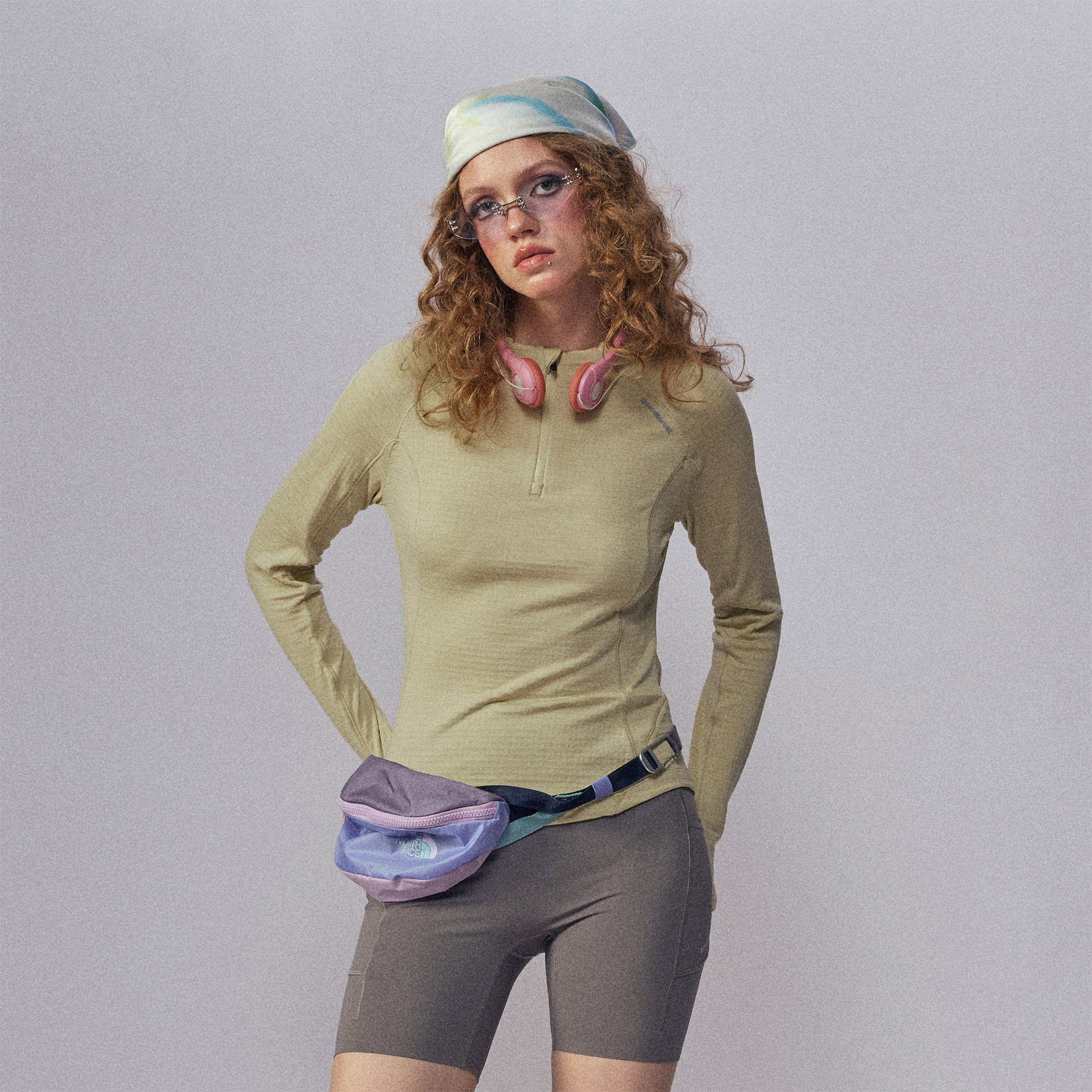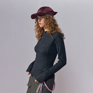 瞬时山野Monterest3A抗菌反光logo印花格子绒贴身抓绒加绒长袖 T恤