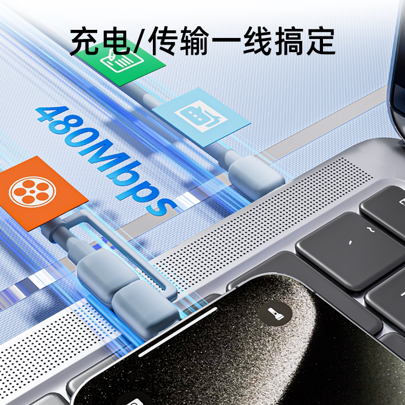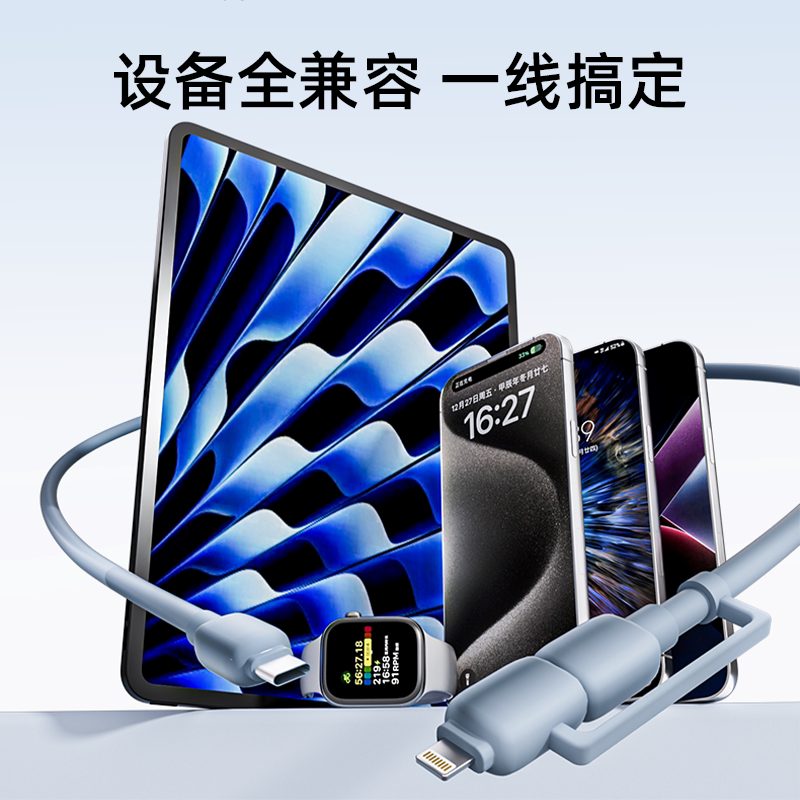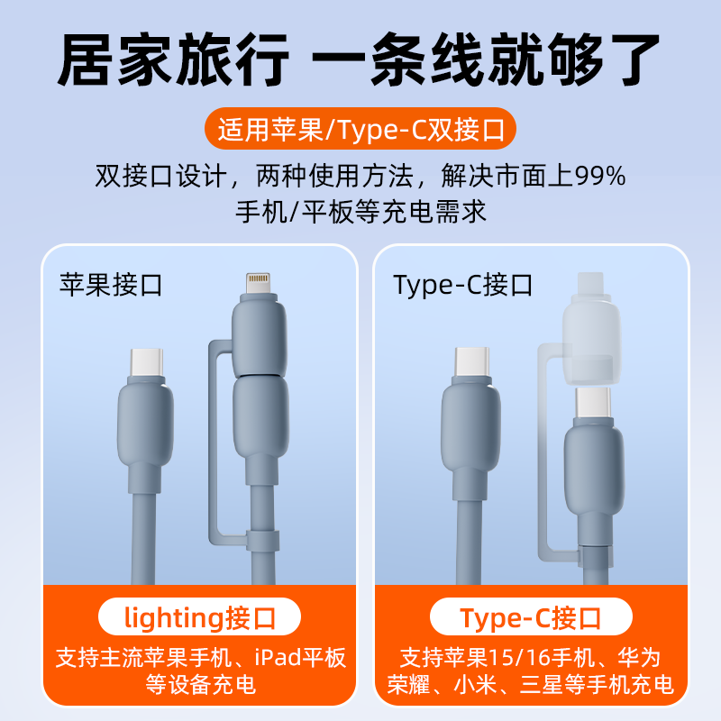企品二合一快充数据线适用苹果华为vivo小米oppo手机多功能快充线1.5M