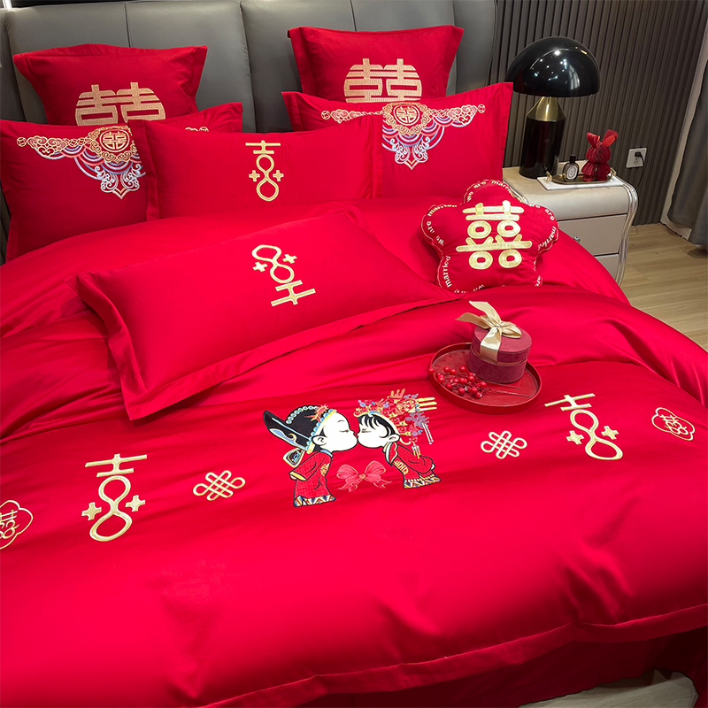 婚庆单被套大红单件品被子新结婚房嫁送礼喜庆被罩床上用品三件套