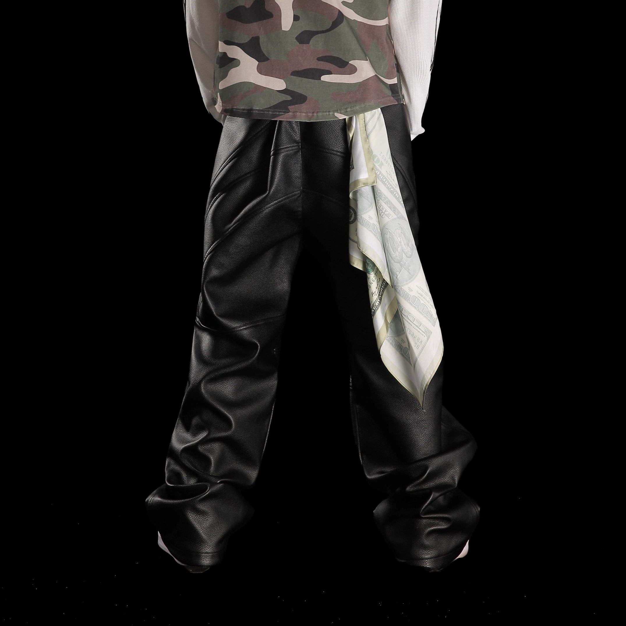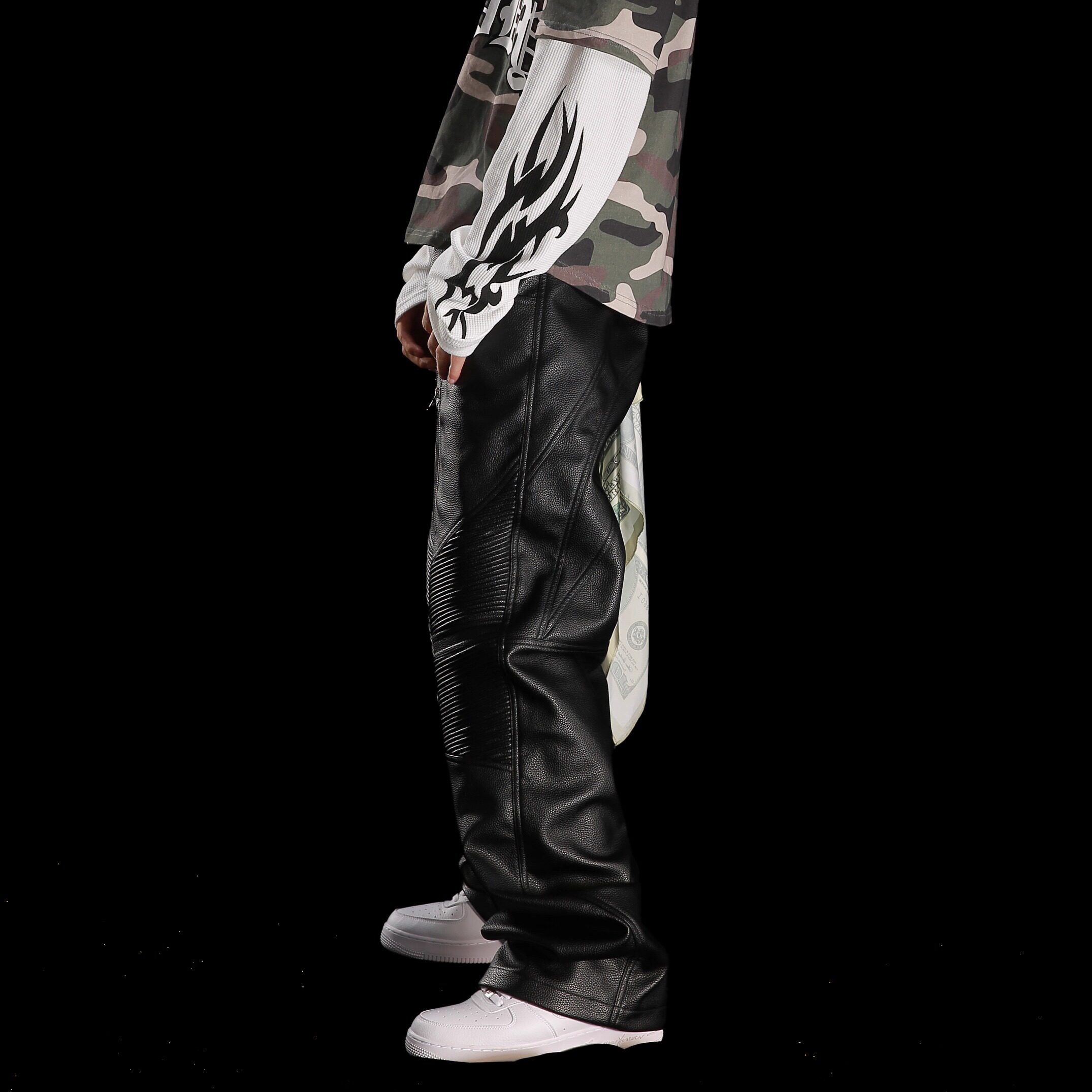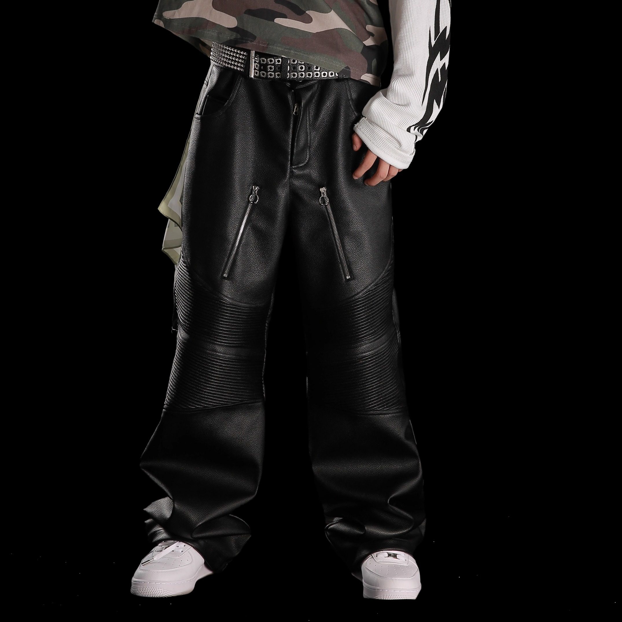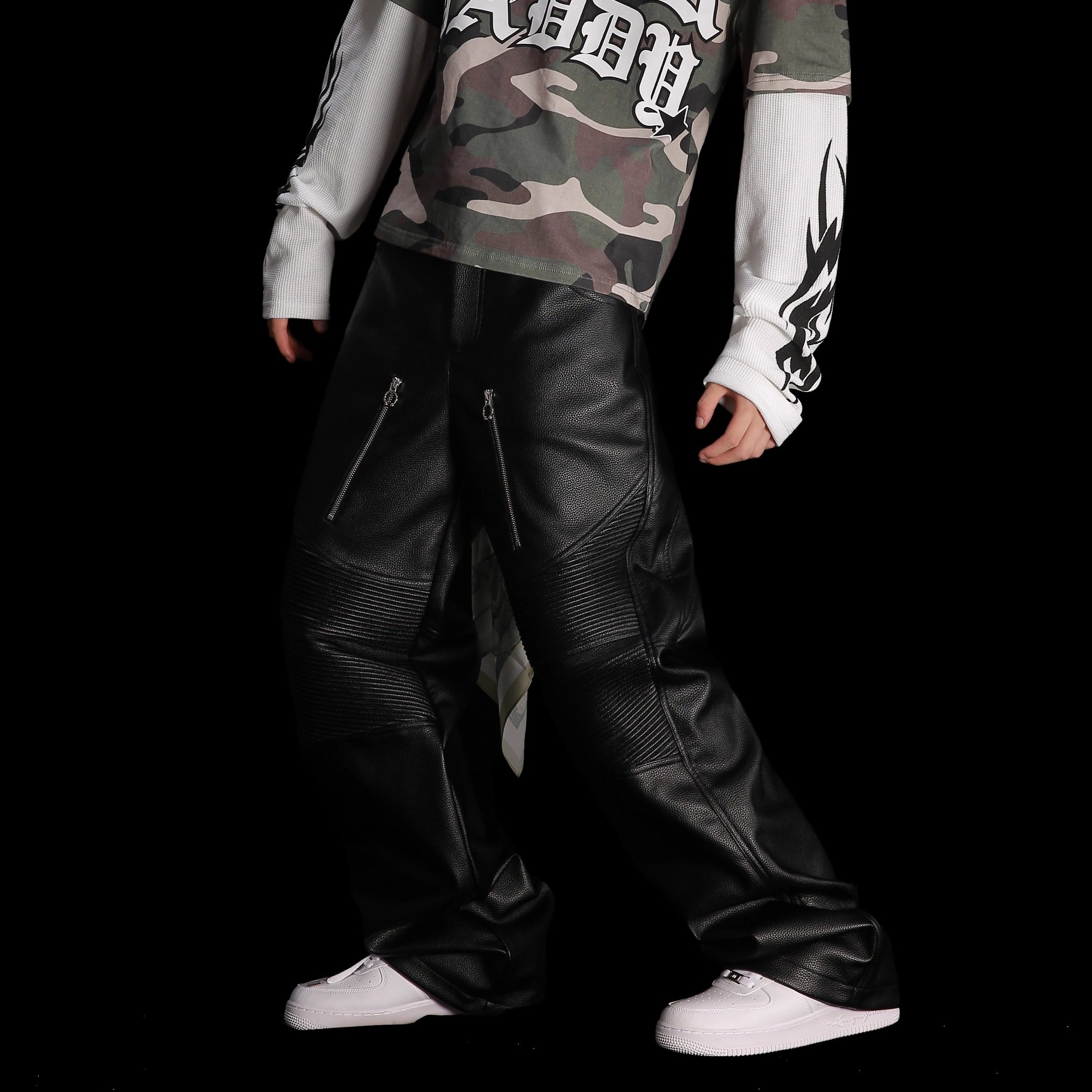 99CLUB秋冬原创机车荔枝纹打揽皮裤 小众嘻哈情侣 美式