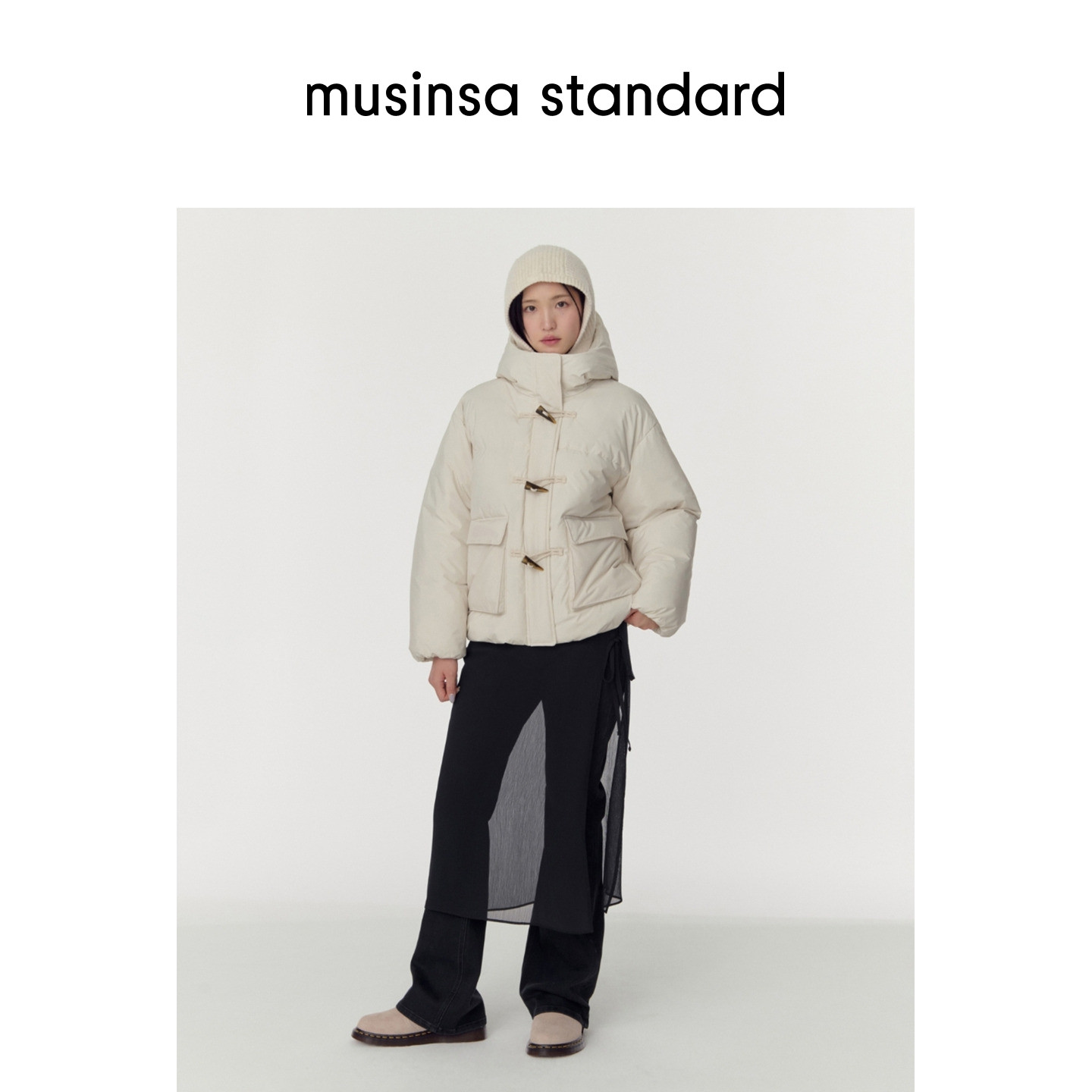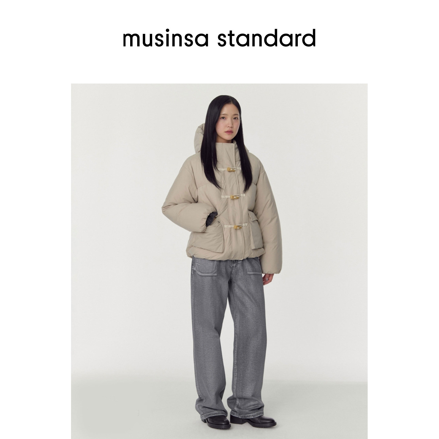 韩国25秋冬女士连帽纯色百搭时尚 standard 棉服外套musinsa