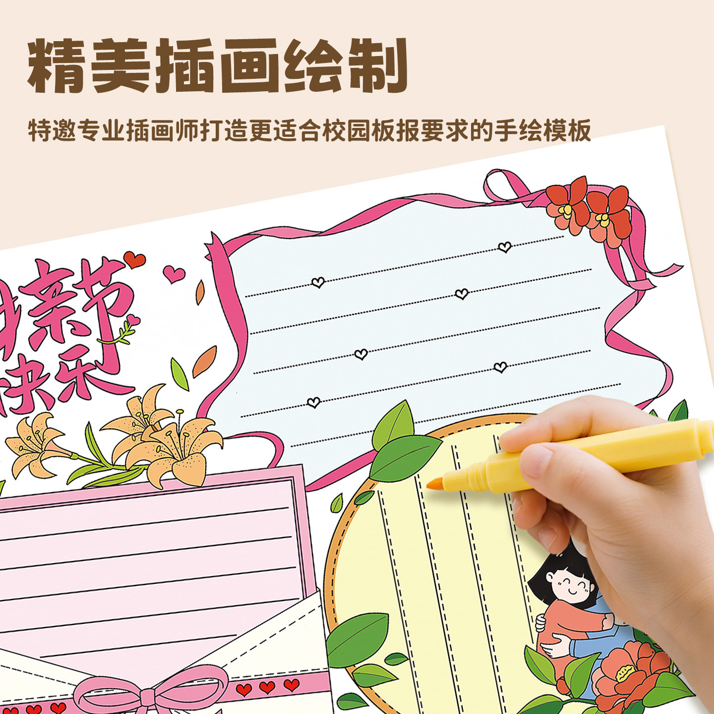 小学生手抄报模板大全a4镂空画画神器清明传统节日8k线稿万能尺子节日画画镂空2025年