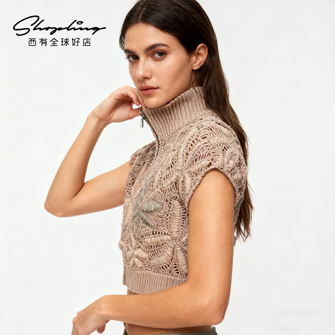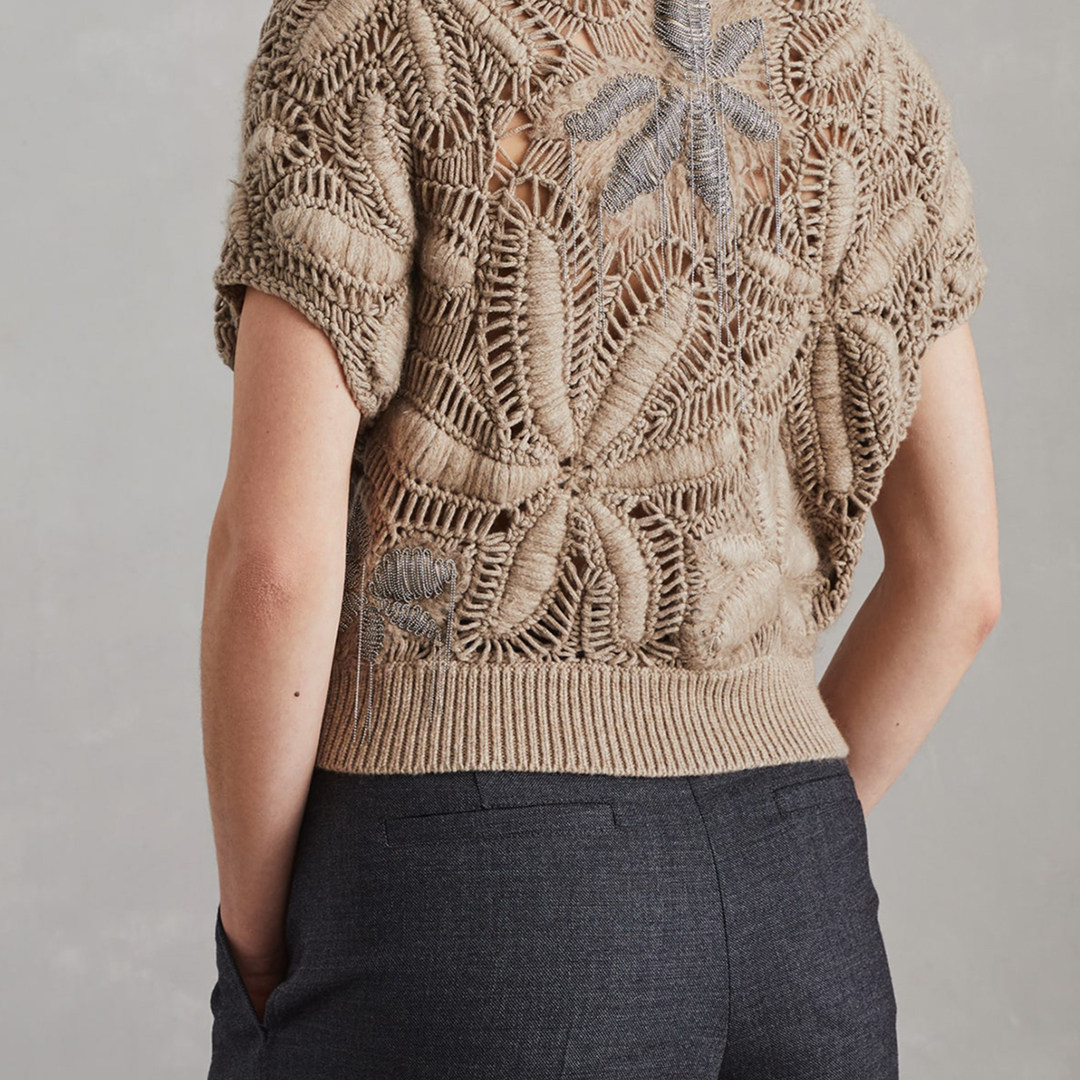 针织开衫 秋冬女士钩编花短袖 Cucinelli 毛衣银泰 Brunello