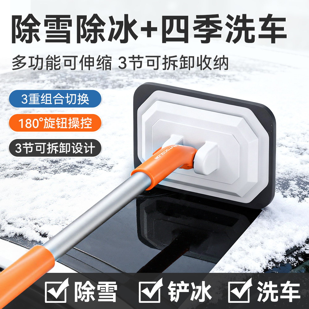 弯杆洗车拖把专用不伤车漆软毛刷可伸缩擦车刷子车用除尘铲雪工具