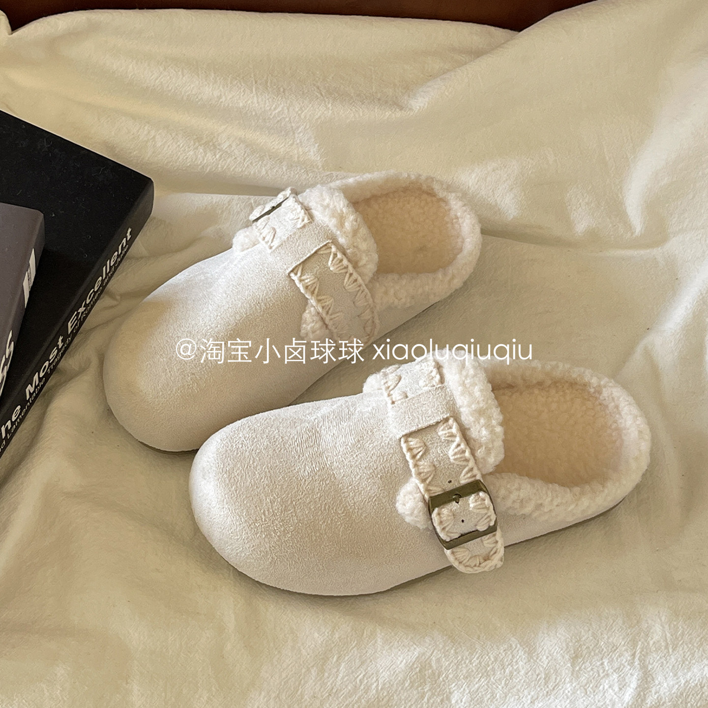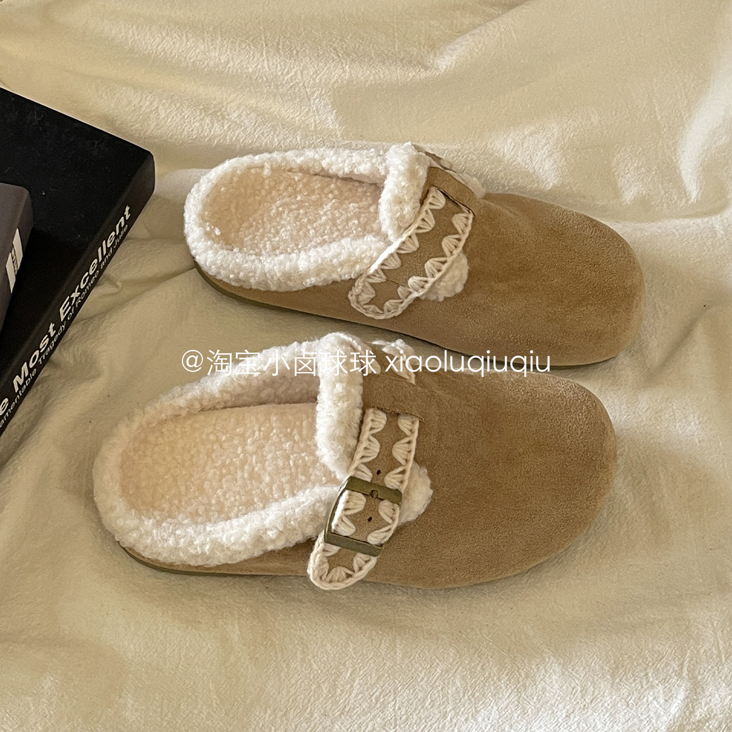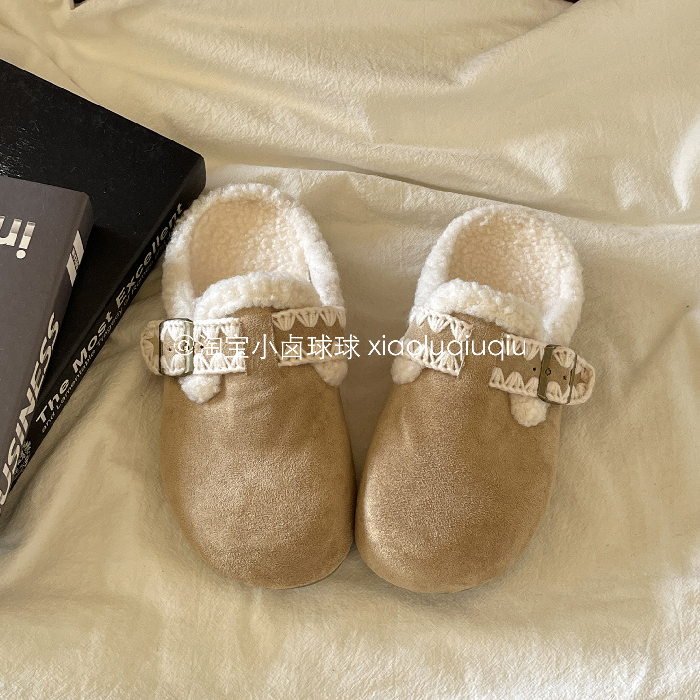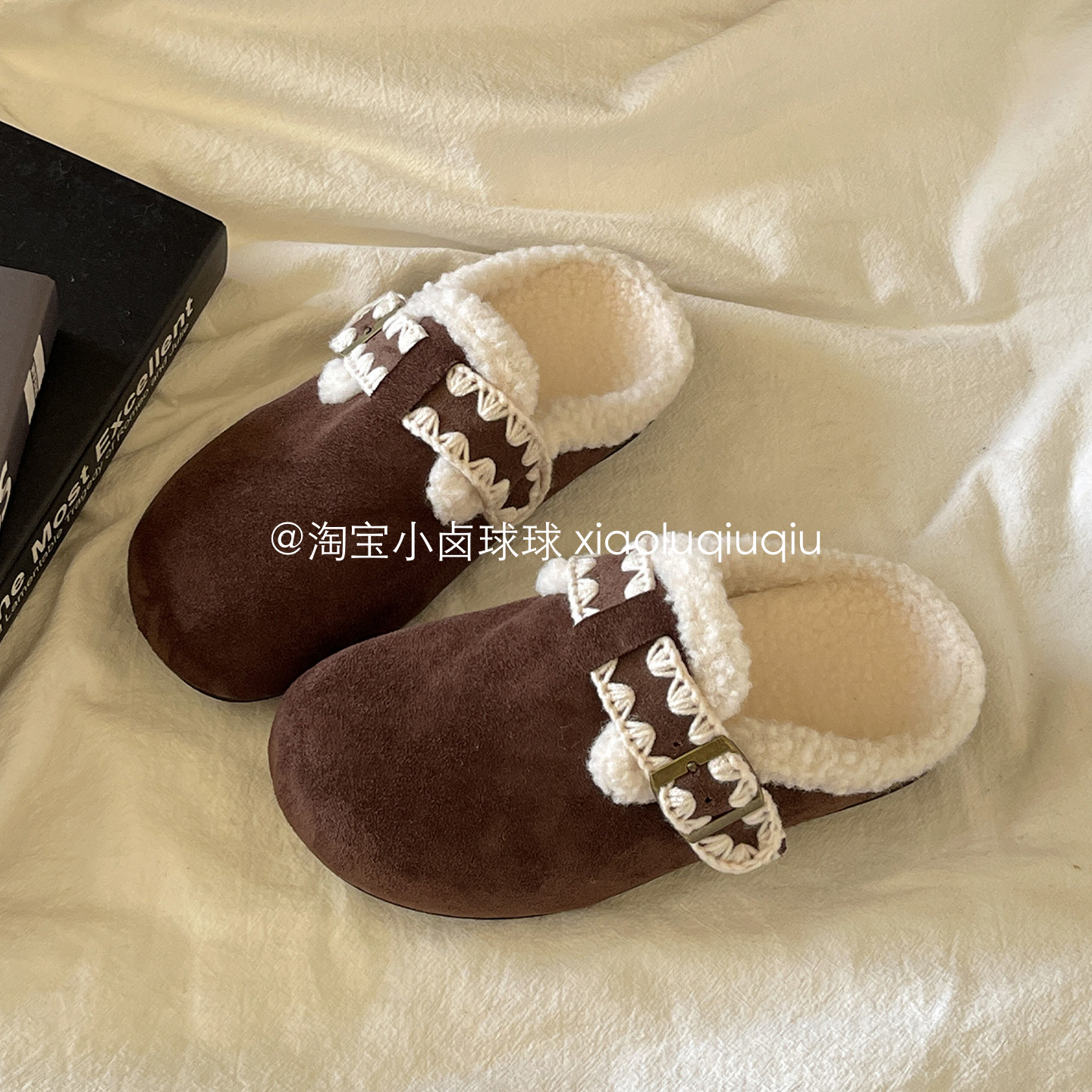 一脚蹬加绒包头拖鞋 小卤球球二棉鞋 冬季 女2025新款 复古毛毛勃肯鞋