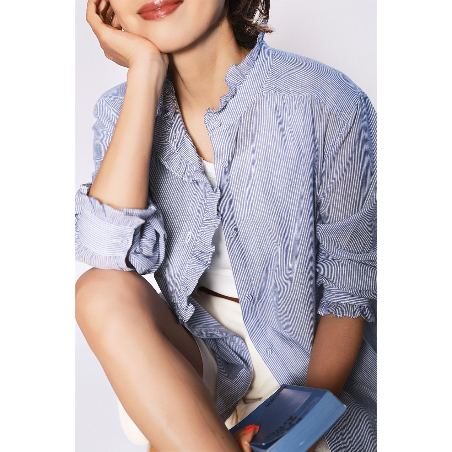 衬衫 ise 木耳边蓝色条纹100%棉长袖 partner P2540105 Office