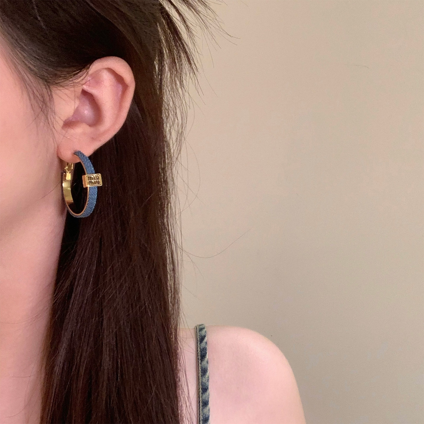 韩系miu字母牛仔方圆脸耳环女轻奢高级感巨好看耳圈独特耳钉耳饰