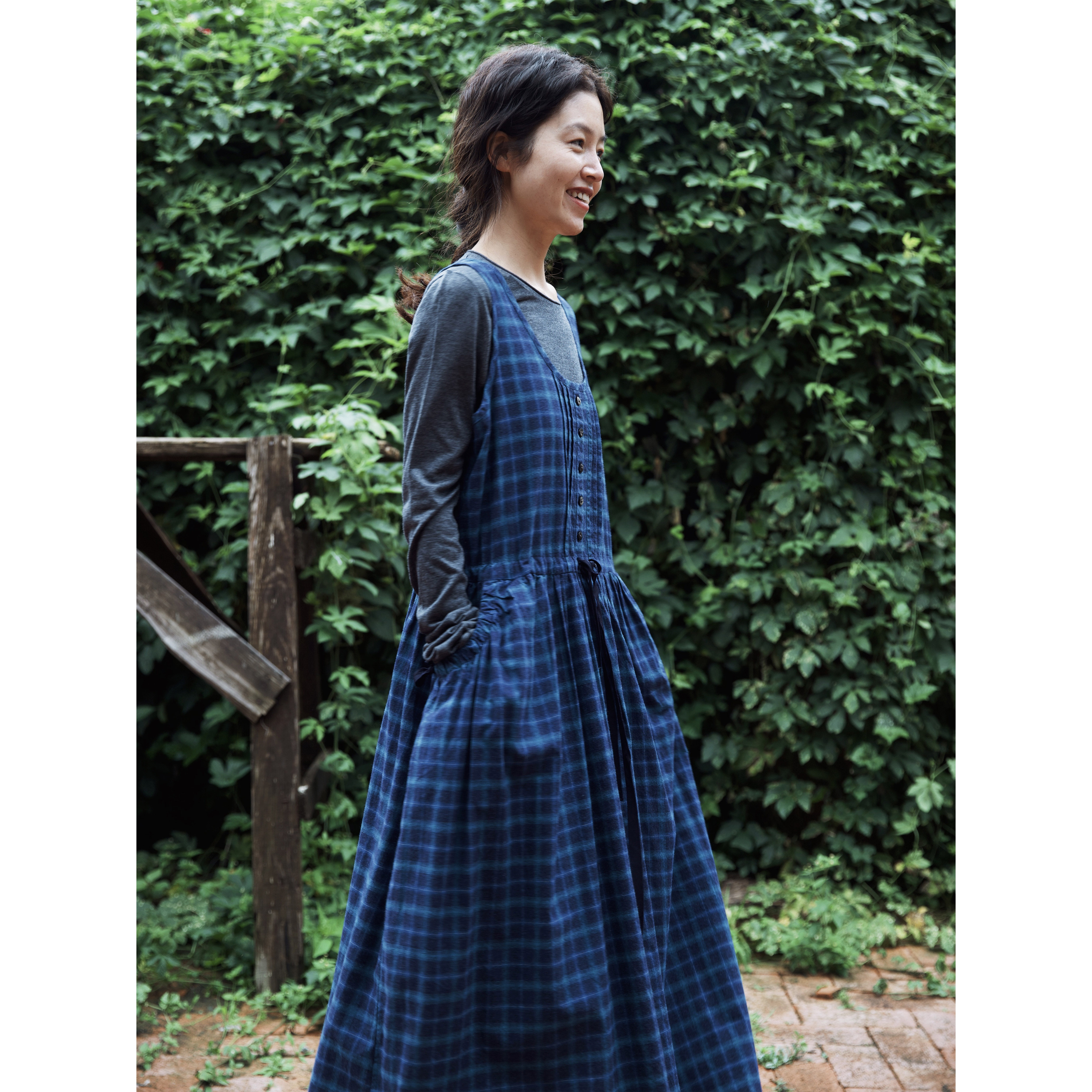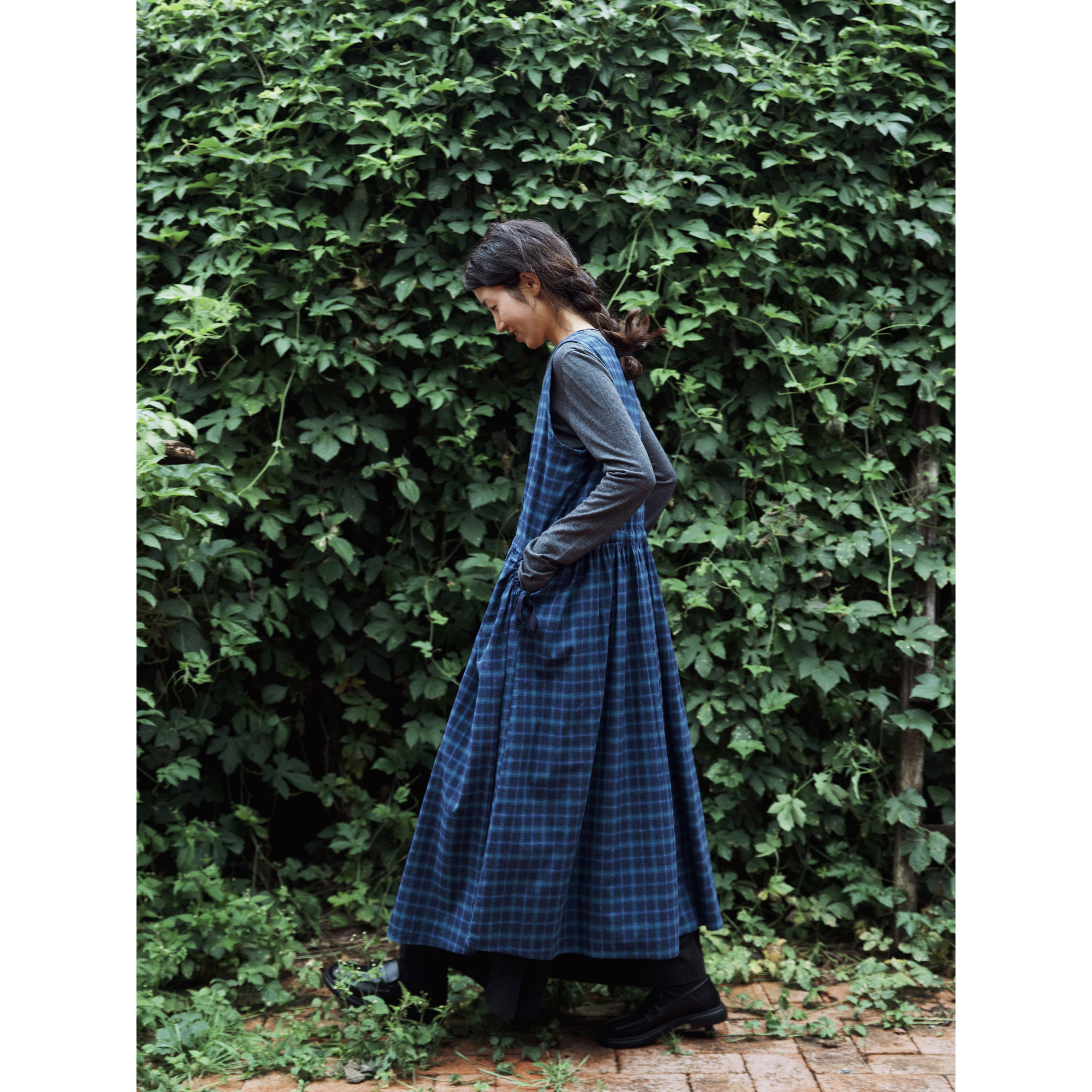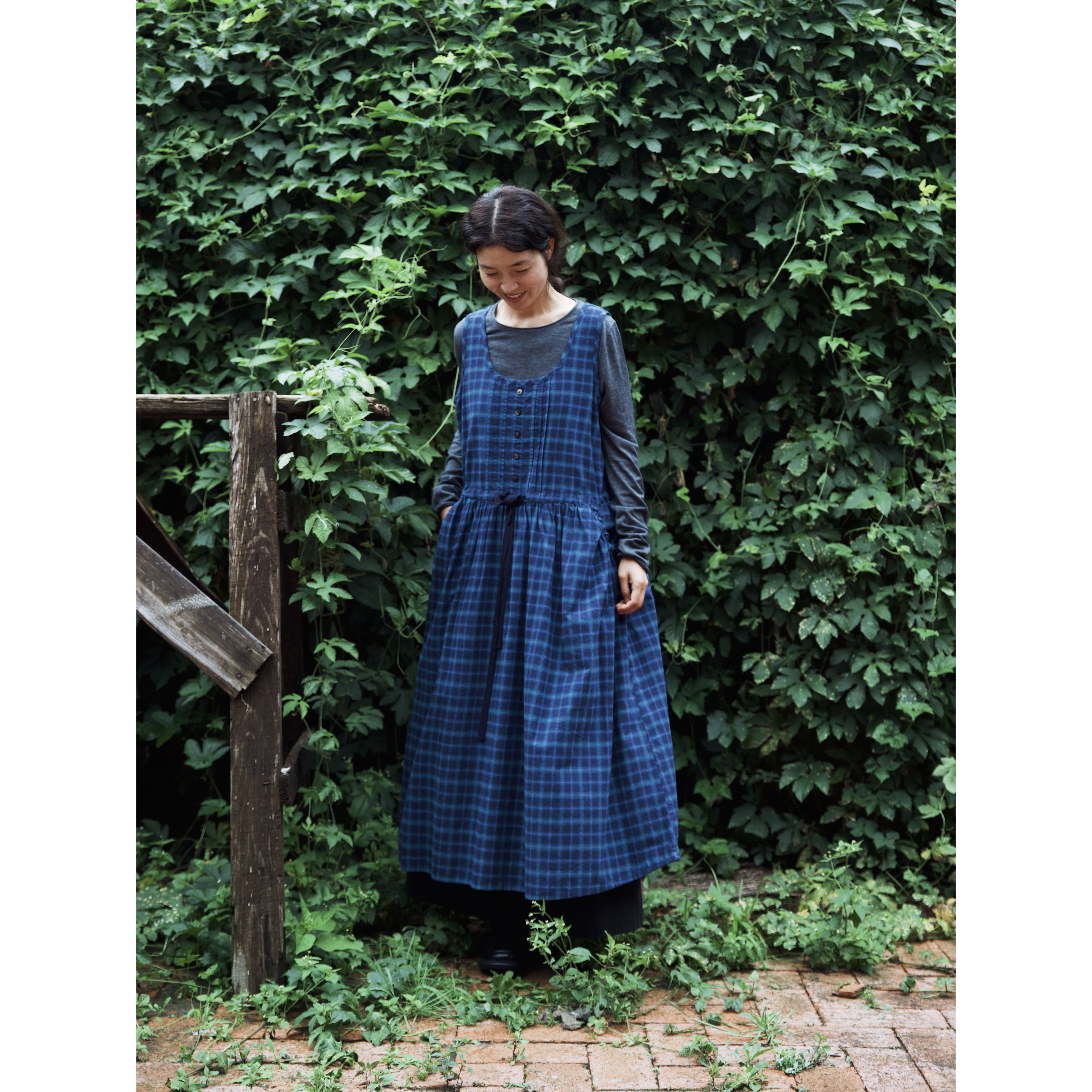 秋冬靛蓝色织格圆领背心裙 连衣裙 复述柔软体感 全棉磨毛