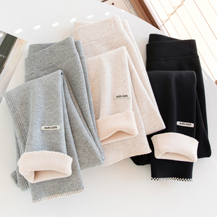 儿童无骨加厚长裤 外穿女宝宝灰色保暖棉裤 子 加绒秋冬季 女童打底裤