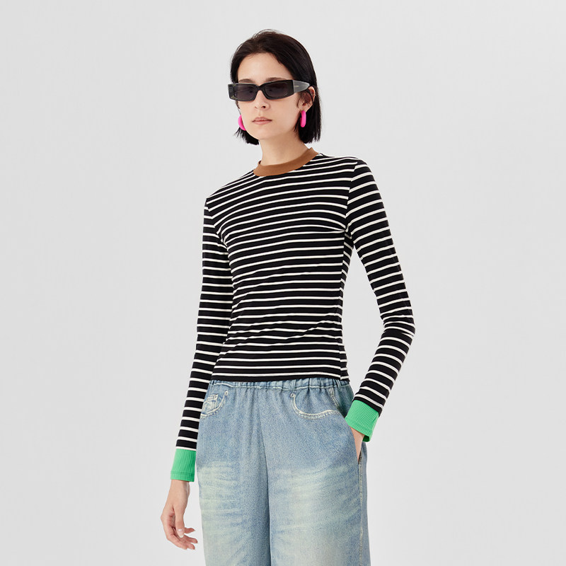 AR撞色条纹打底衫 衣橱直播间 可外穿保暖内衣内搭女 所有女生