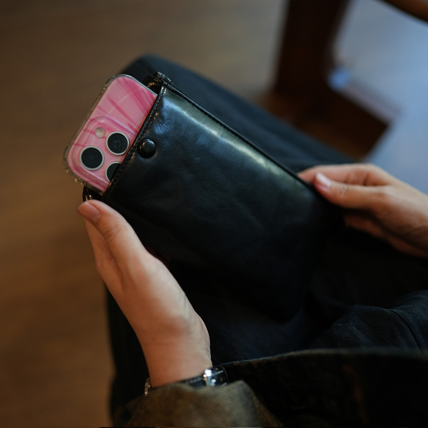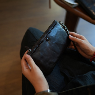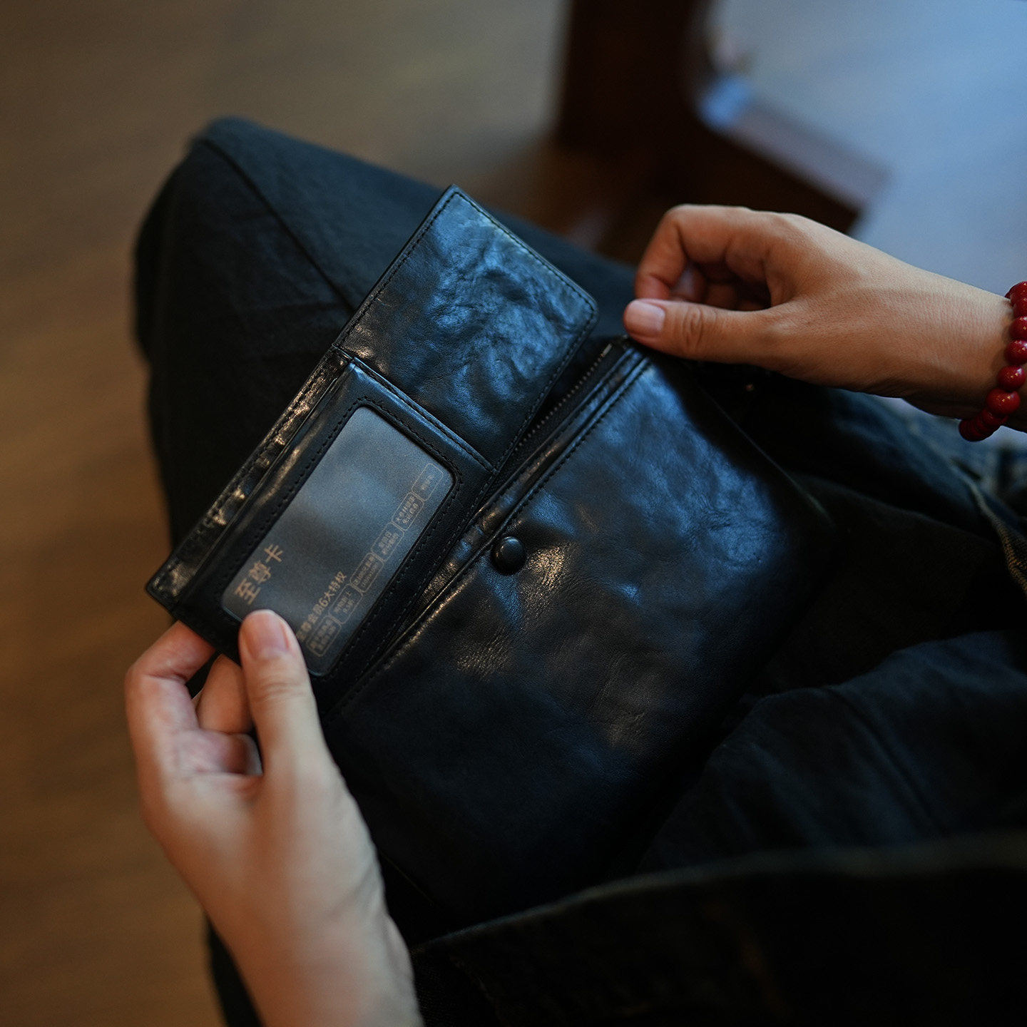 鹿小姐植鞣牛皮复古做旧高级感大容量钱包真皮手机证件收纳手拿包