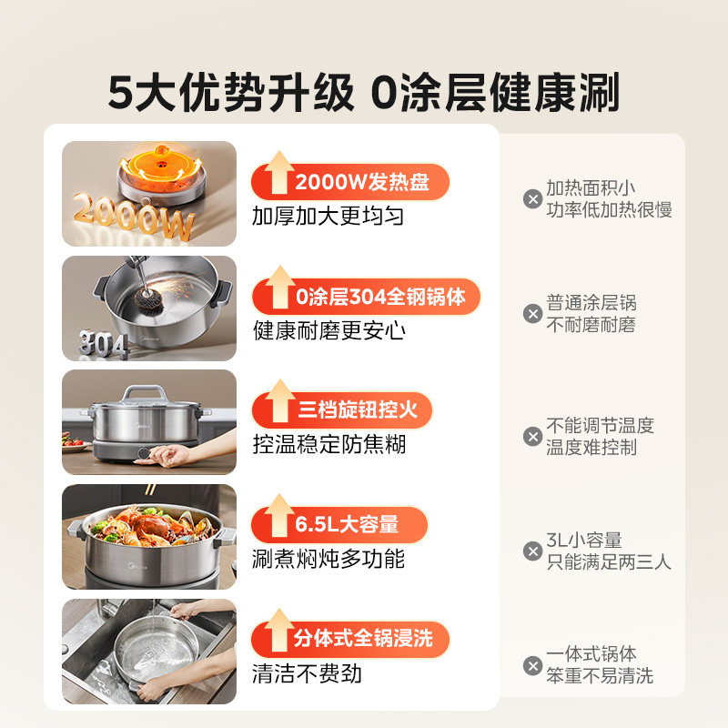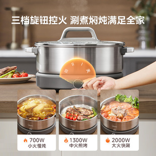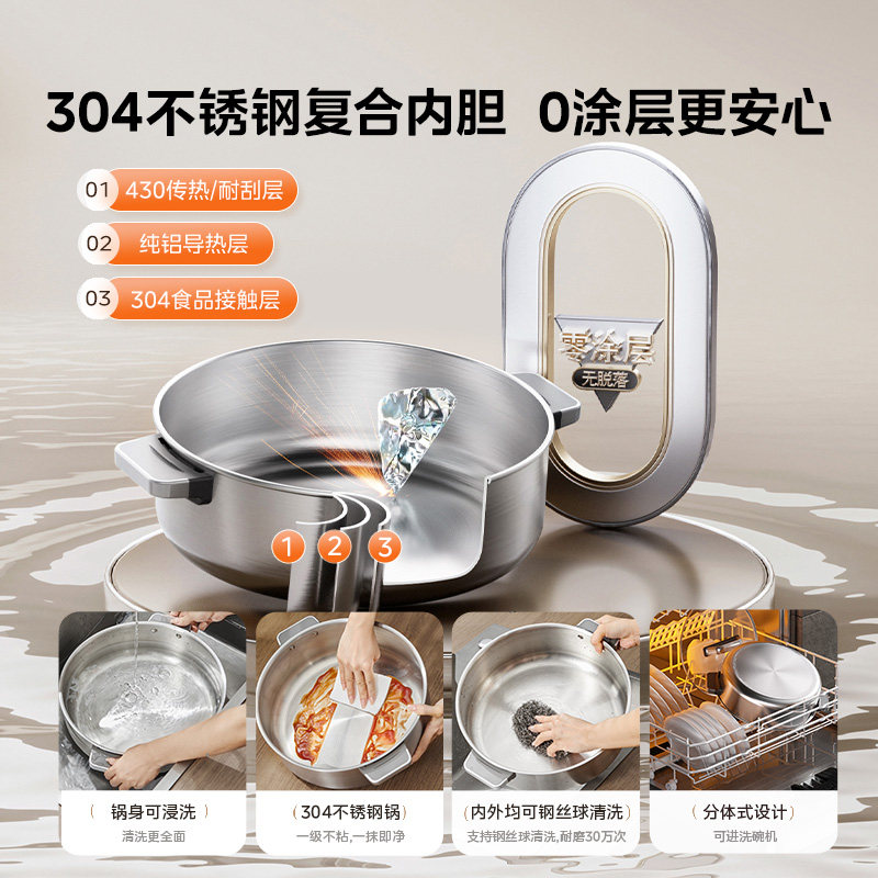 家用多功能电热锅官方新款 美 全钢速沸电火锅0涂层电煮锅分体式