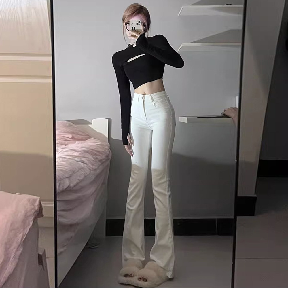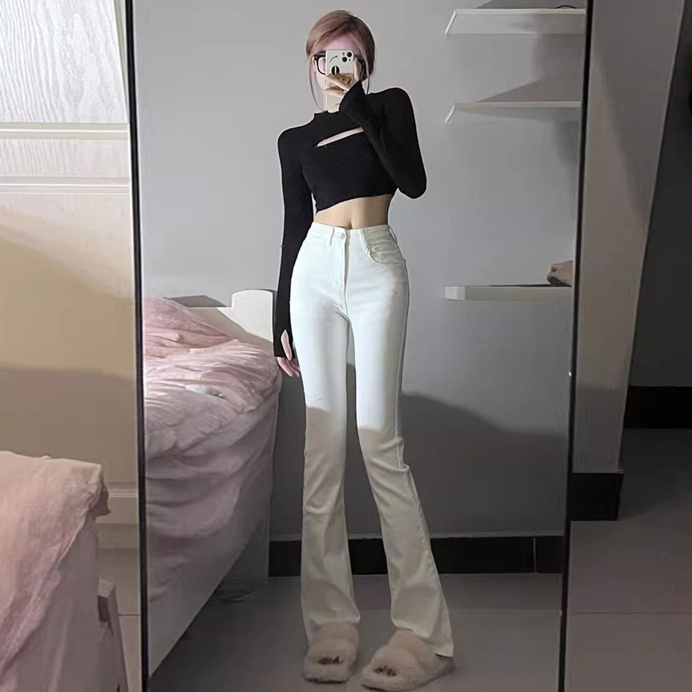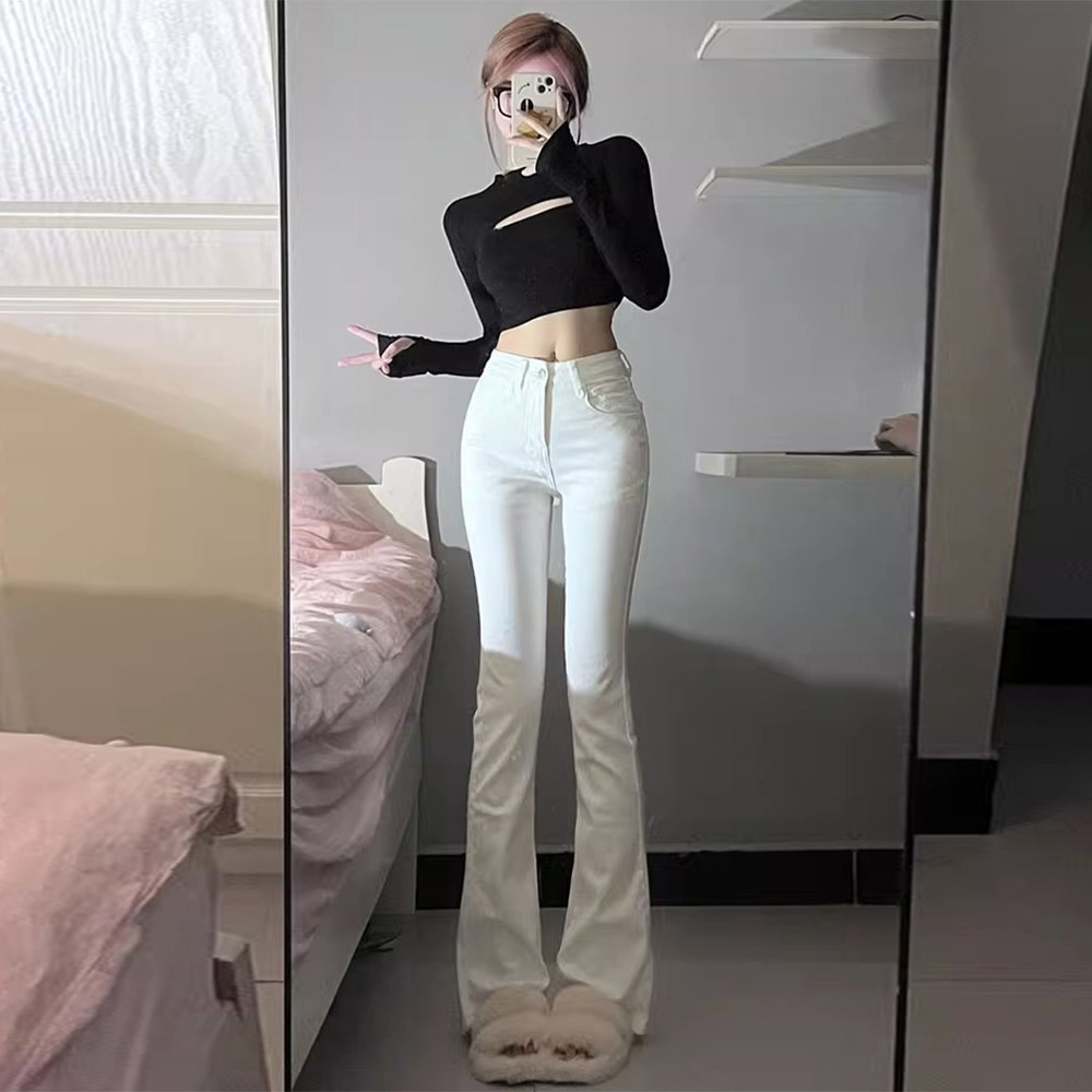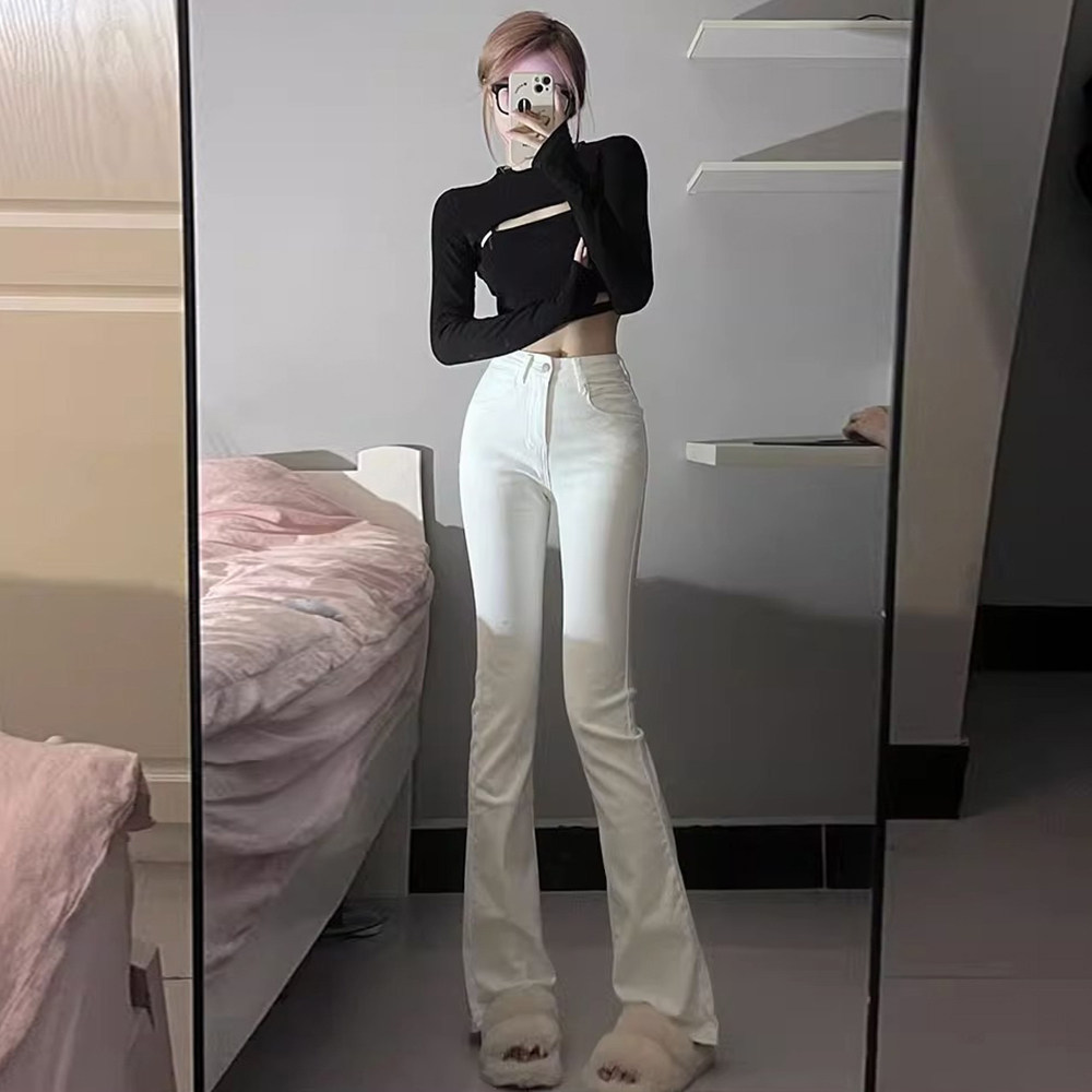 显瘦显高辣妹百搭喇叭裤 2025秋季 女高腰修身 白色微喇牛仔裤 子 新款