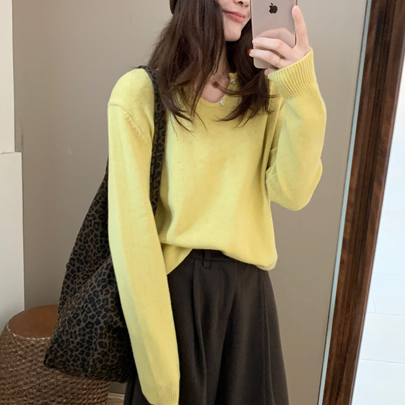 简约气质针织衫 韩版 女 新款 话里淑女风甜美小扣子套头毛衣2025秋季