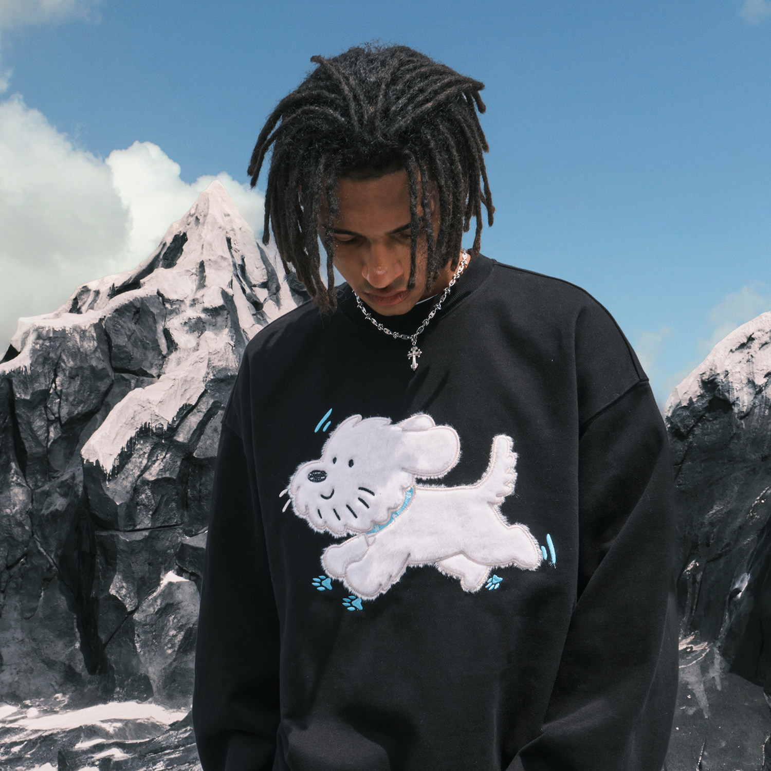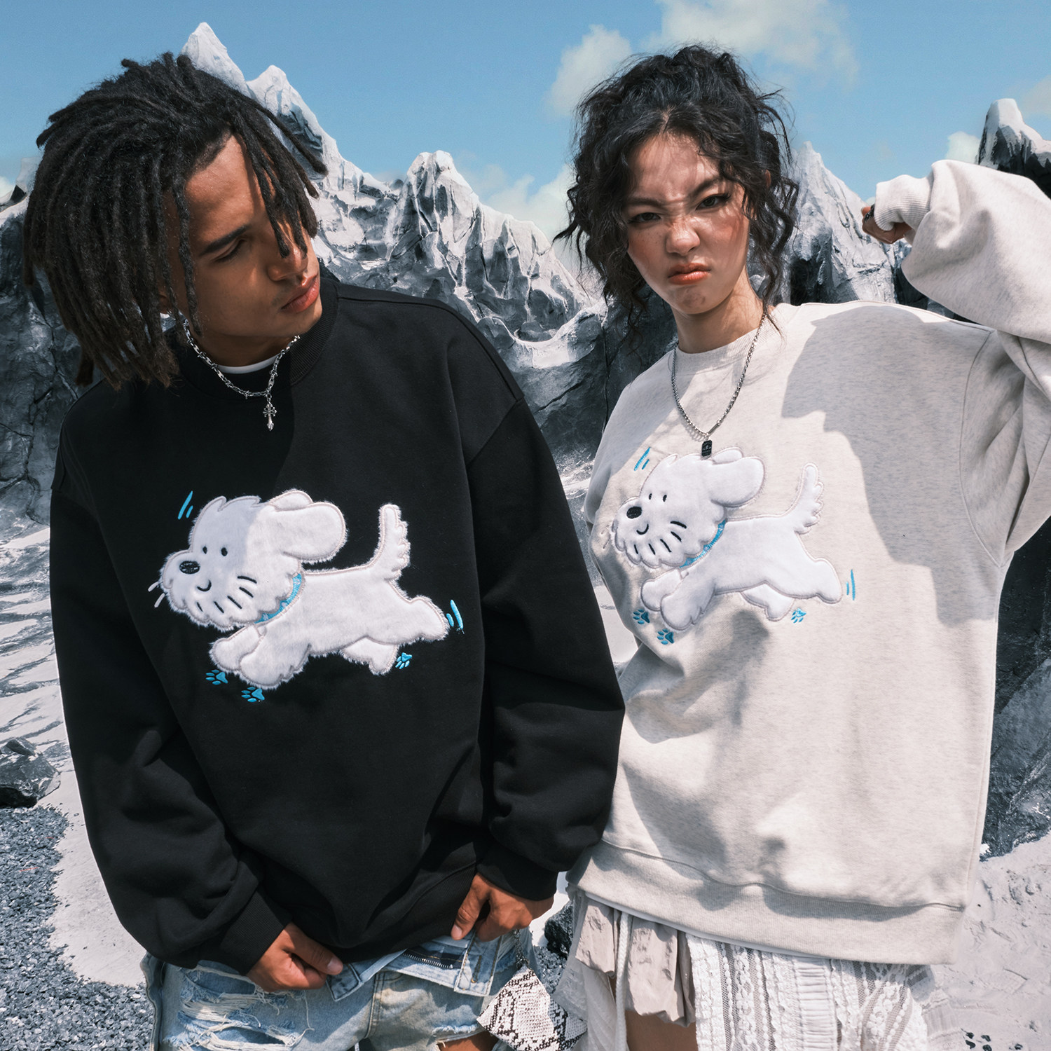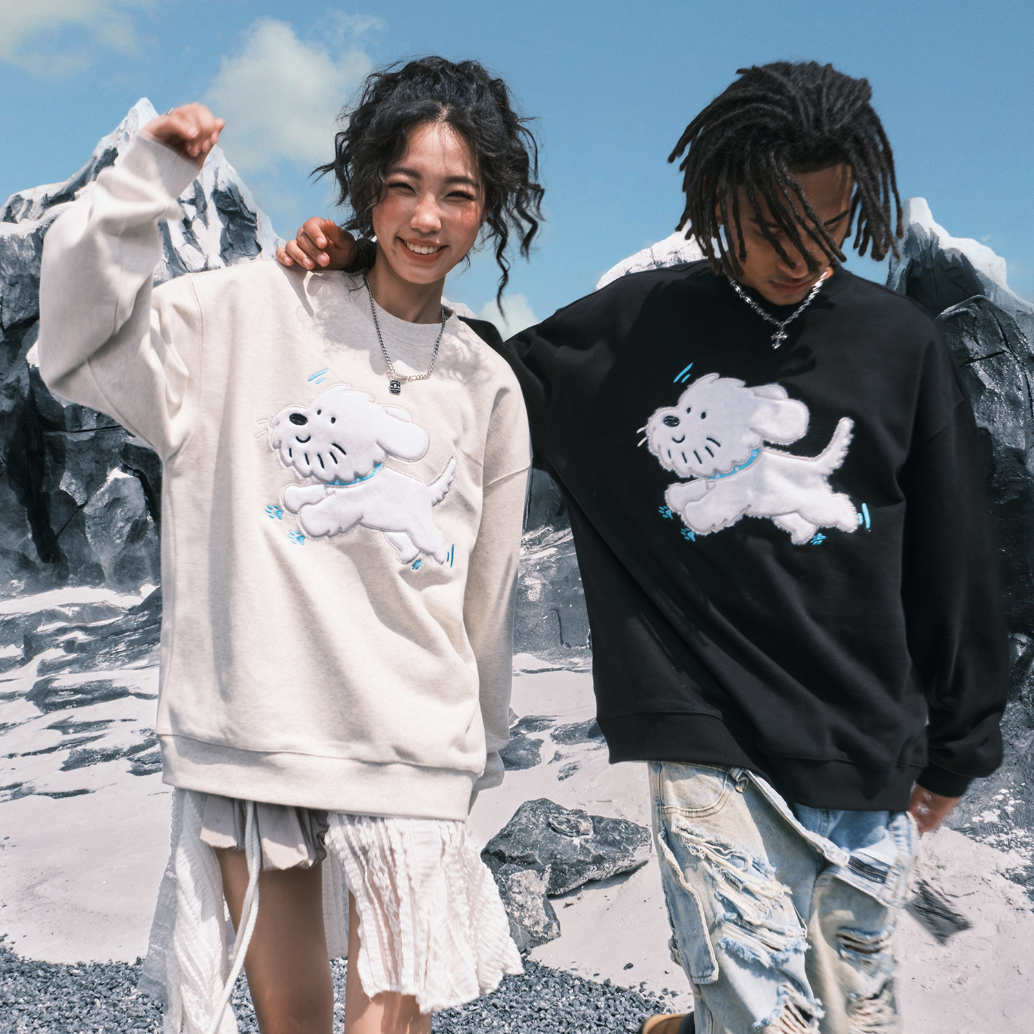 新款 潮牌情侣男女2025冬季 刺绣小狗卫衣外套圆领美式 Nuthink美式