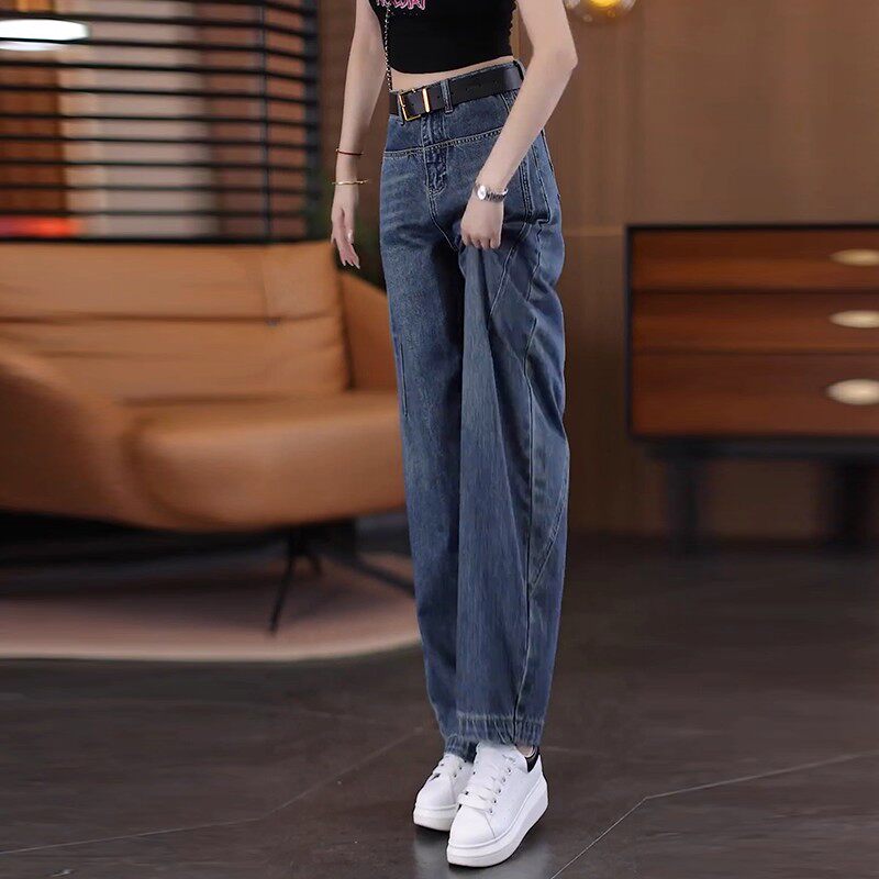 小个子九分高腰直筒休闲裤 今年流行爆款 女春秋2026新款 弯刀牛仔裤