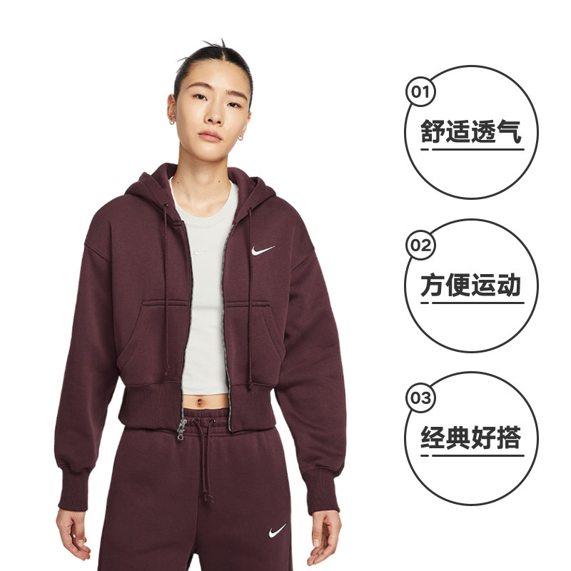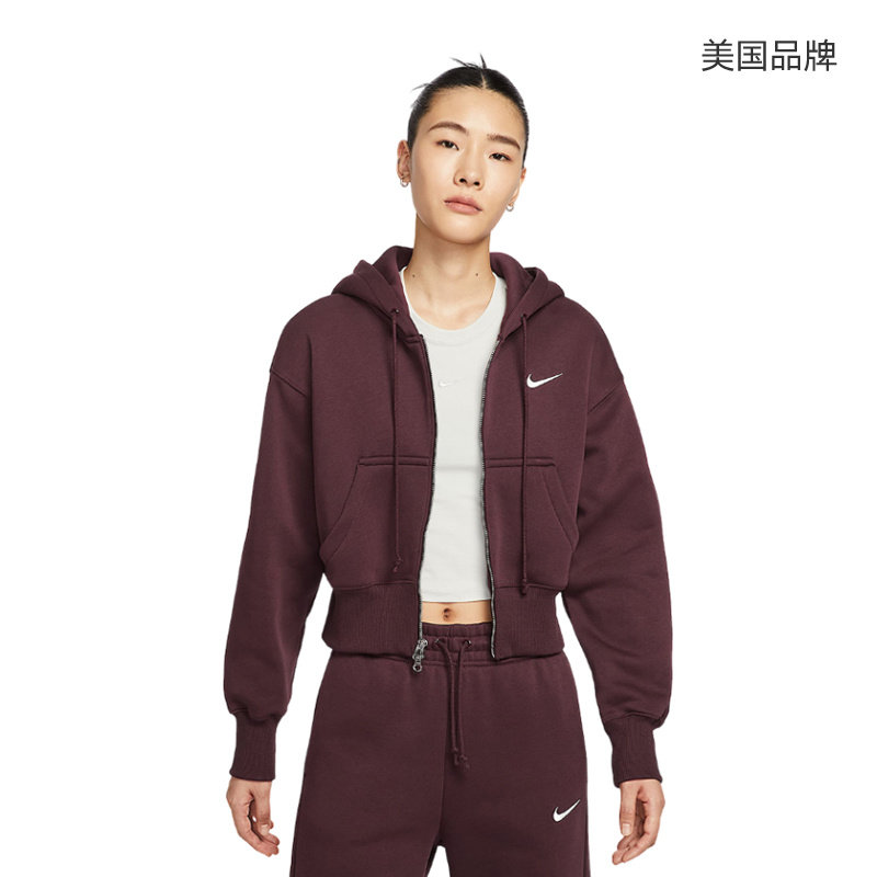 加绒夹克运动外套HV2427 连帽衫 NIKE耐克女子宽松短款 652 自营