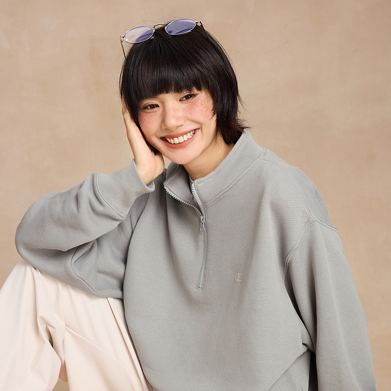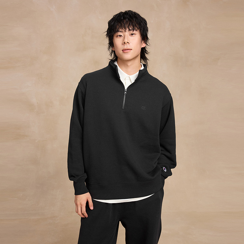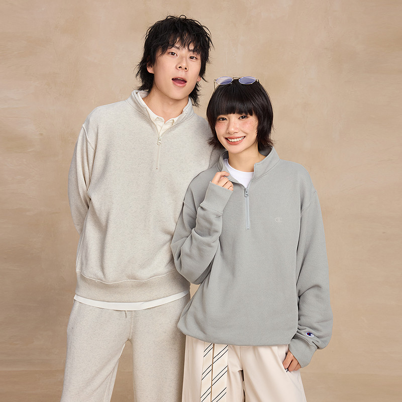 女半开襟纯色 新款 丁禹兮同款 Champion冠军半拉链翻领卫衣男25冬季