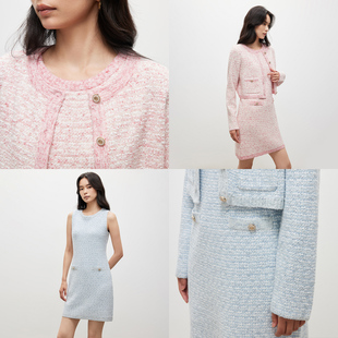ziziFei秋冬美式 设计感条纹蝴蝶结针织打底背心连衣裙女 复古新款