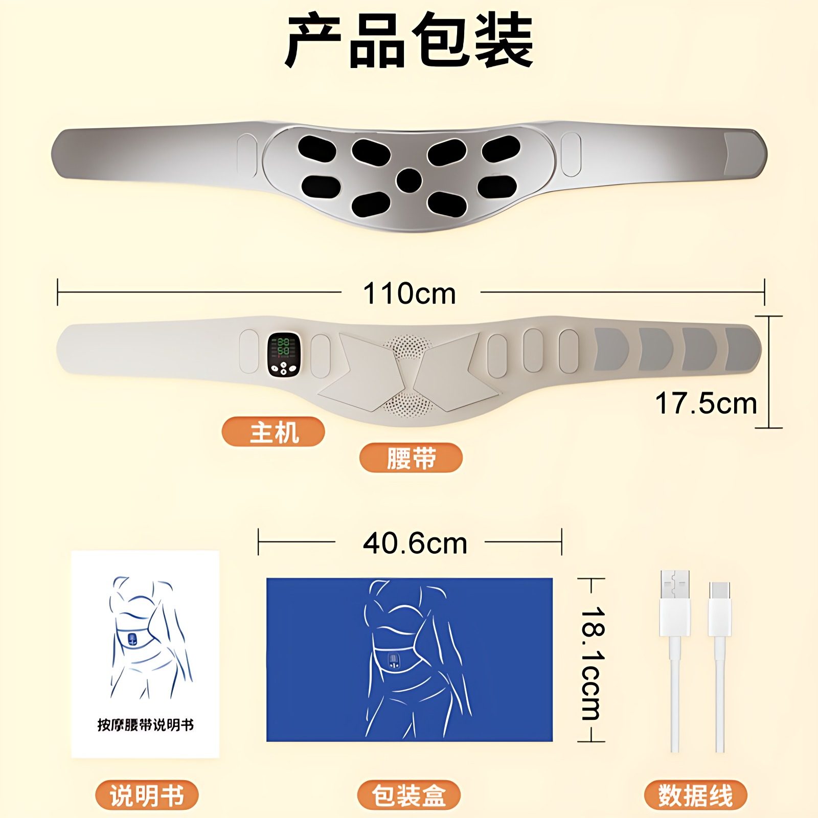 新款 家用EMS按摩腰带腹部电子瘦身带加热震动暴汗减脂电动塑形仪