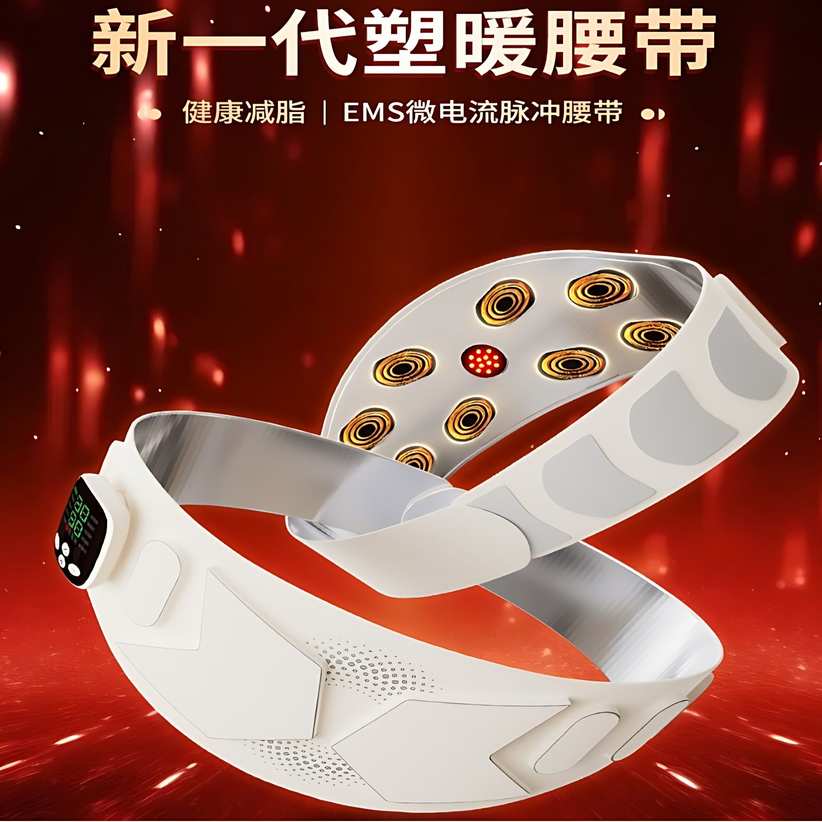 家用EMS脉冲按摩腰带腹部电子瘦身带加热震动暴汗减脂电动塑形仪