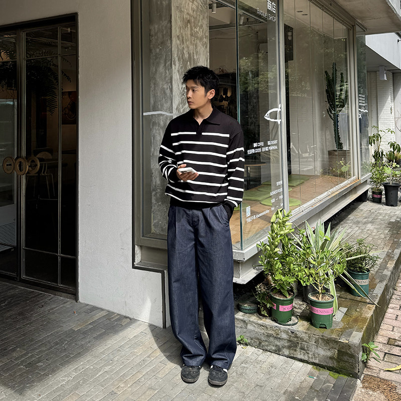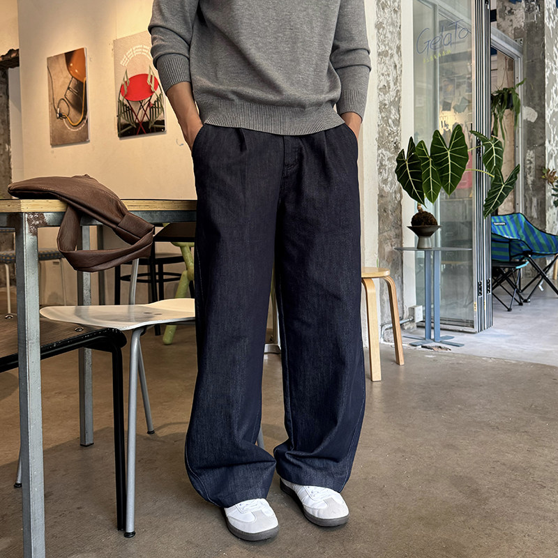 子 男秋冬韩系极简风宽松休闲裤 马克斯星球 天丝小弯刀直筒牛仔裤