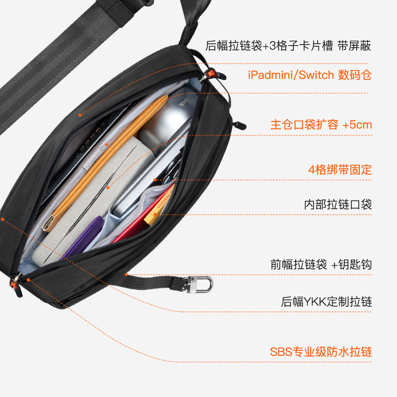 inateck男士 骑行随身包便携胸包男 斜挎包休闲通勤高级斜肩包新款