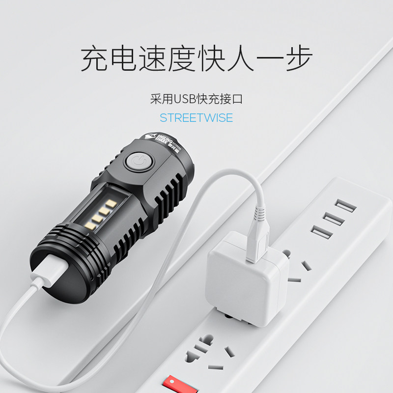 手电筒强光充电式 小型便携户外远射超亮白激光多功能家用耐用巡逻