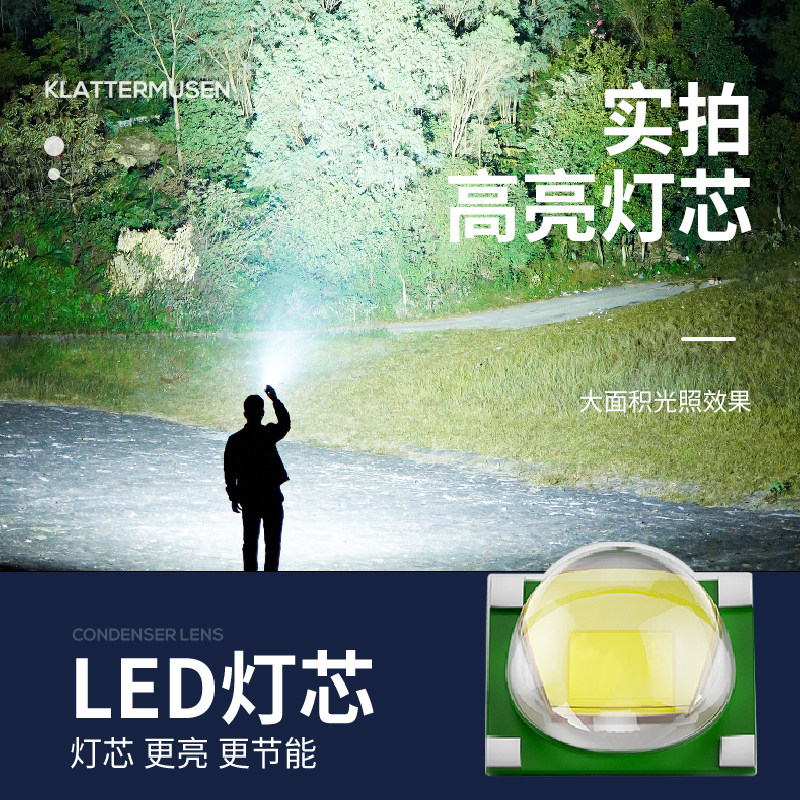 夜爬登山强光超亮手电筒户外防水大功率便携长续航变焦充电激光灯
