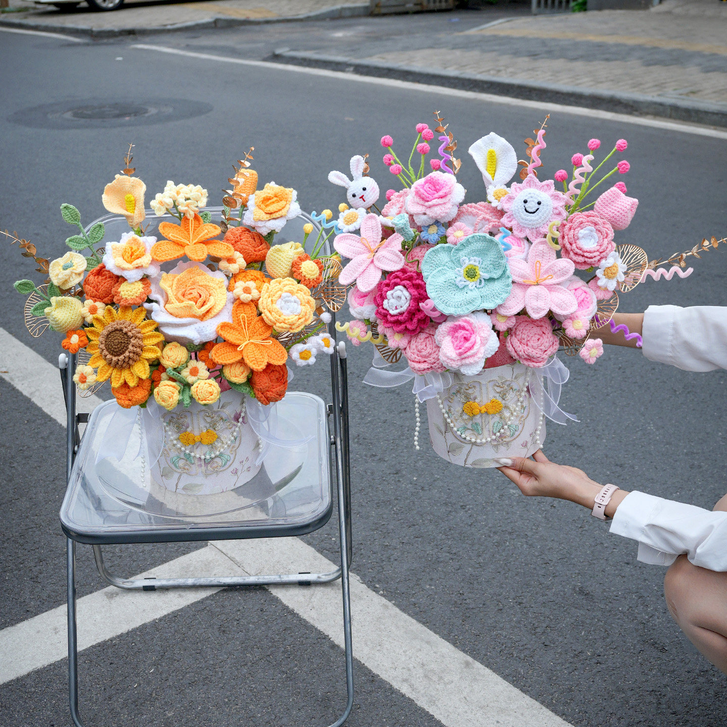 假花仿真花束单支塑料雏菊玫瑰绢布干花花坛栅栏小把插花田园装 饰