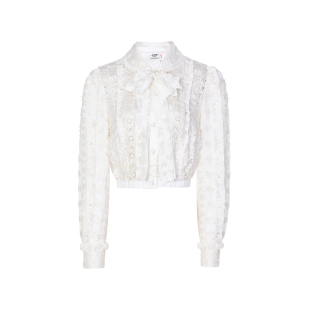 lefame拉飞姆时尚 洋气千金马德拉刺绣上衣内搭女 法式
