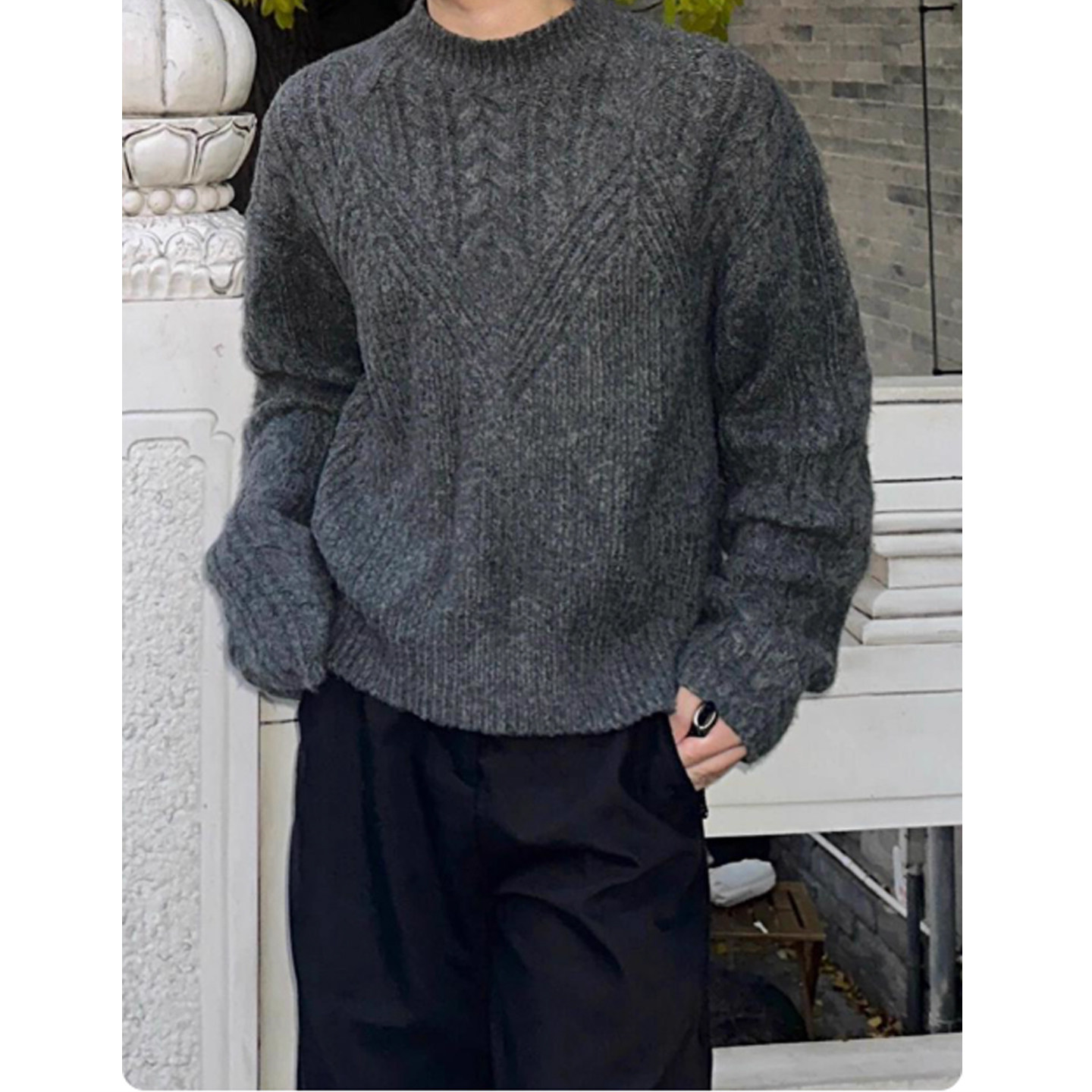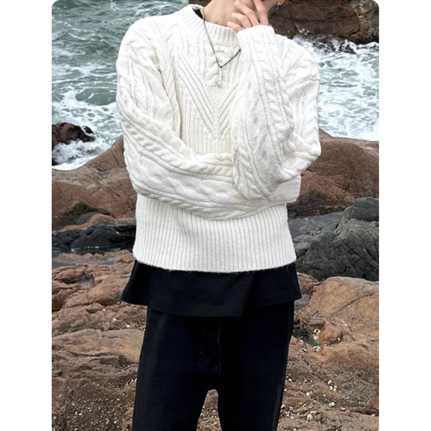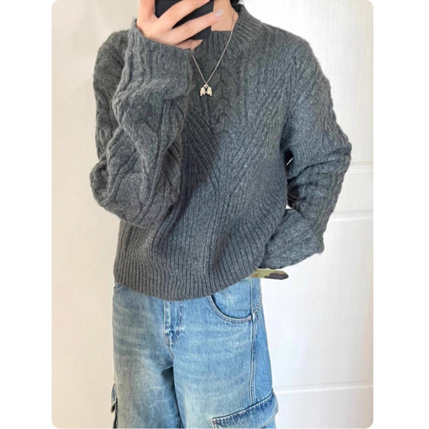情侣针织衫 圆领套头麻花慵懒风毛衣男秋冬季 潮 复古高级感短款 美式