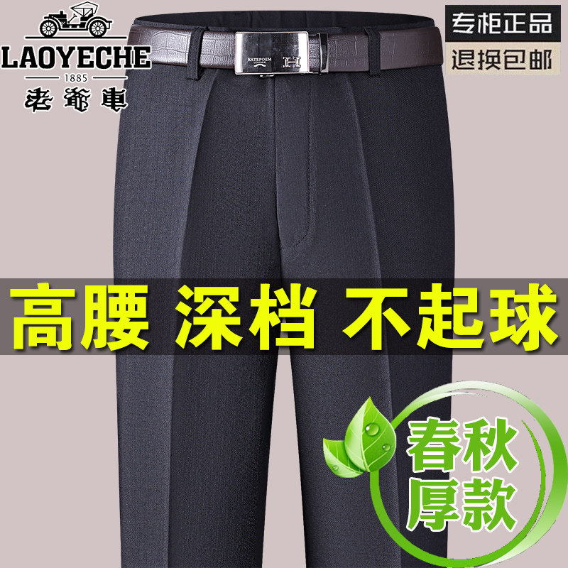 裤 西装 高腰宽松中老年休闲裤 男士 老爷车爸爸裤 直筒长裤 子秋冬厚款