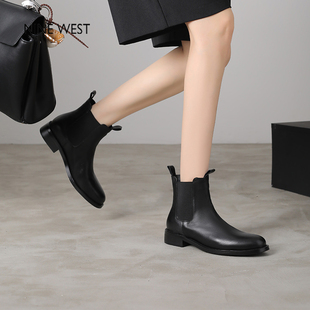 4cm真皮切尔西短靴女粗跟加绒秀气瘦瘦靴 十年·缘分 王小毒