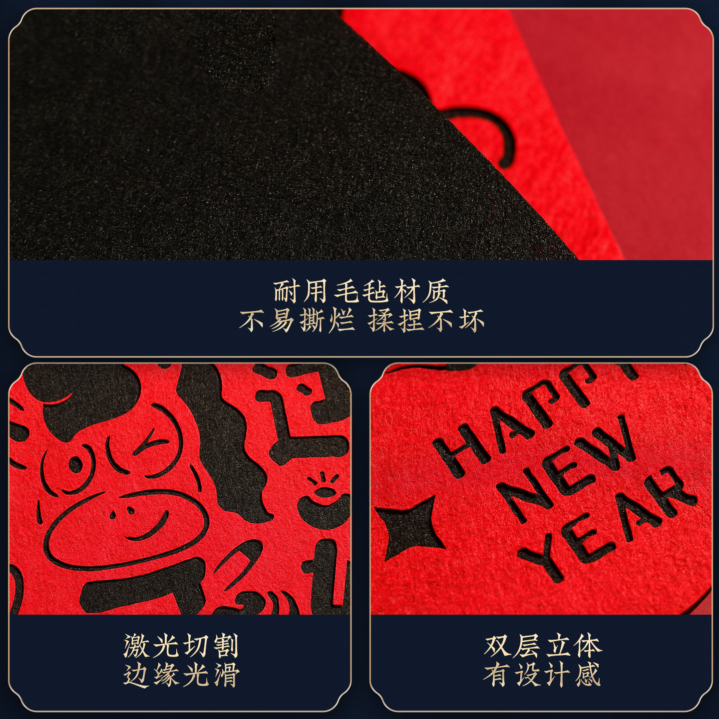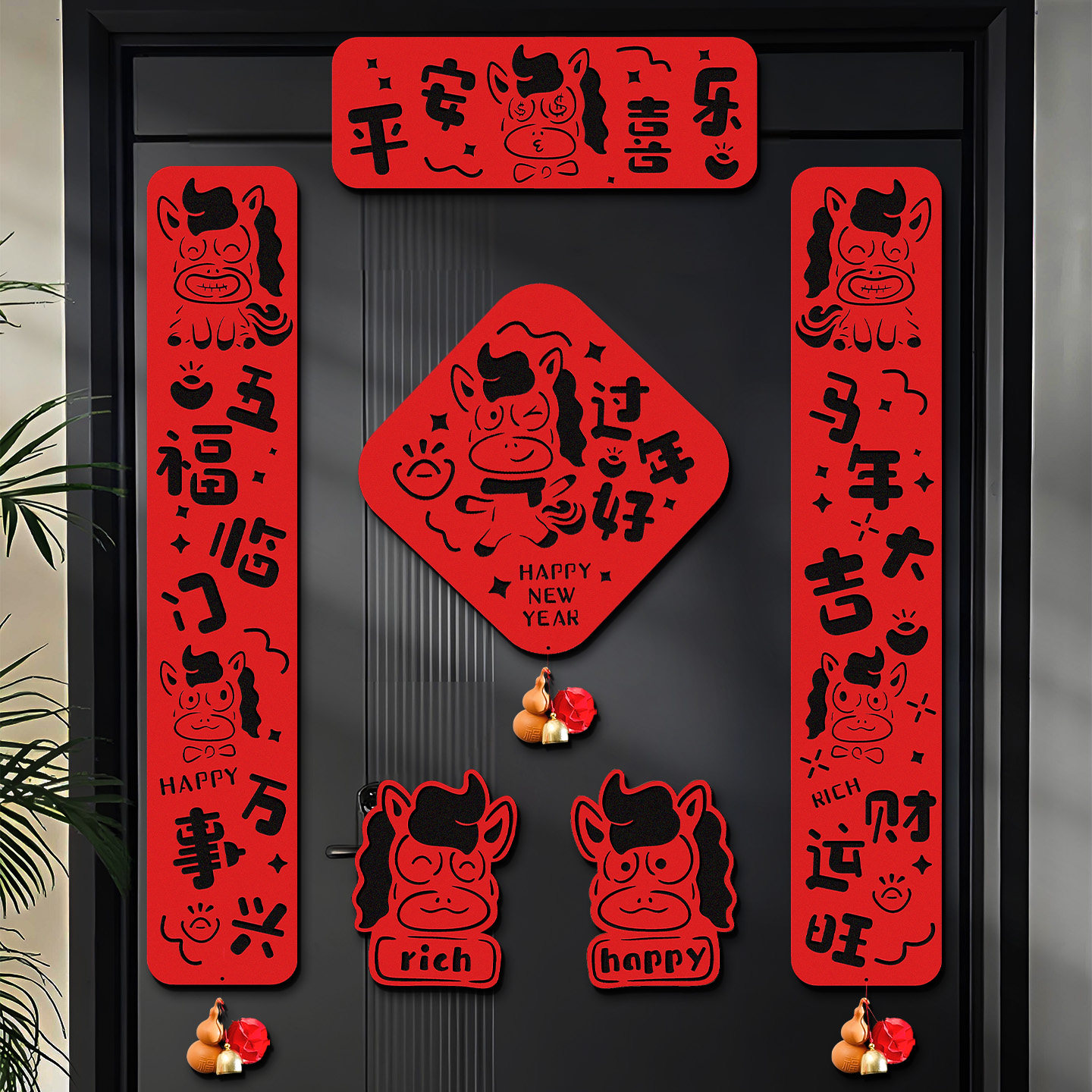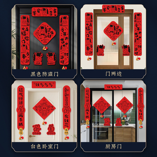 2026年植绒对联自粘书法春联马年新款 饰 新年过年绒布大门对春节装