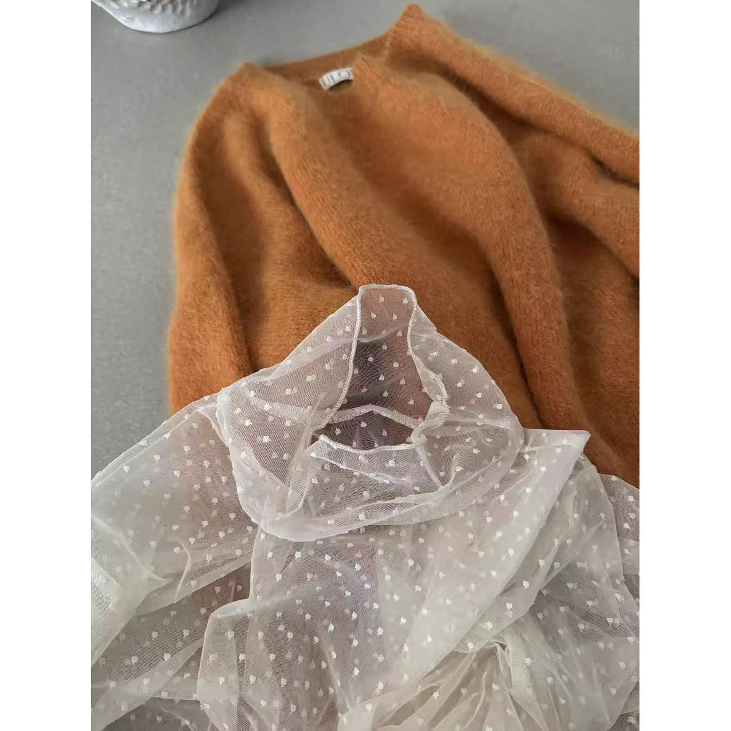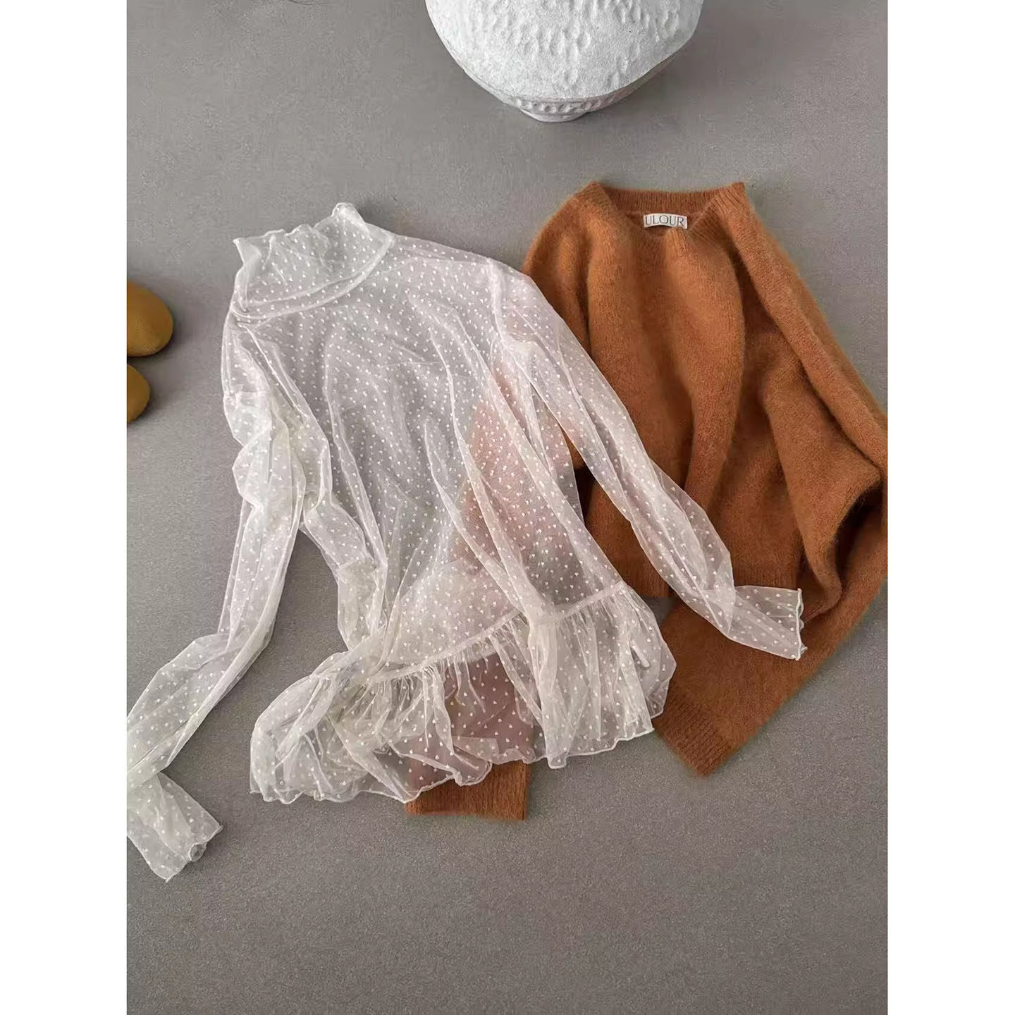 早秋巨好看 波点蕾丝衫 长袖 宽松薄款 上衣 女装