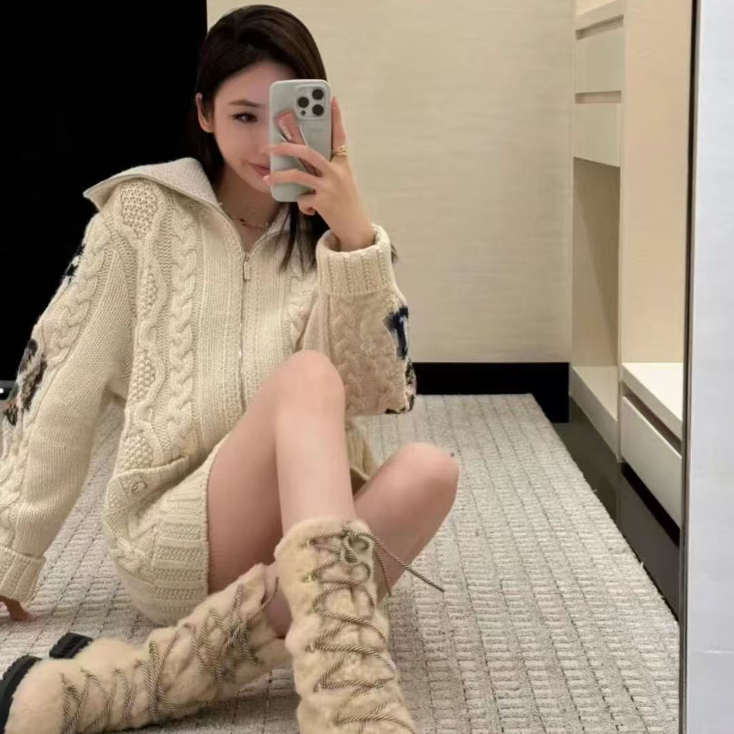 外套 高级慵懒风时尚 小香风重工双拉链菱形麻花针织开衫 女秋冬新款