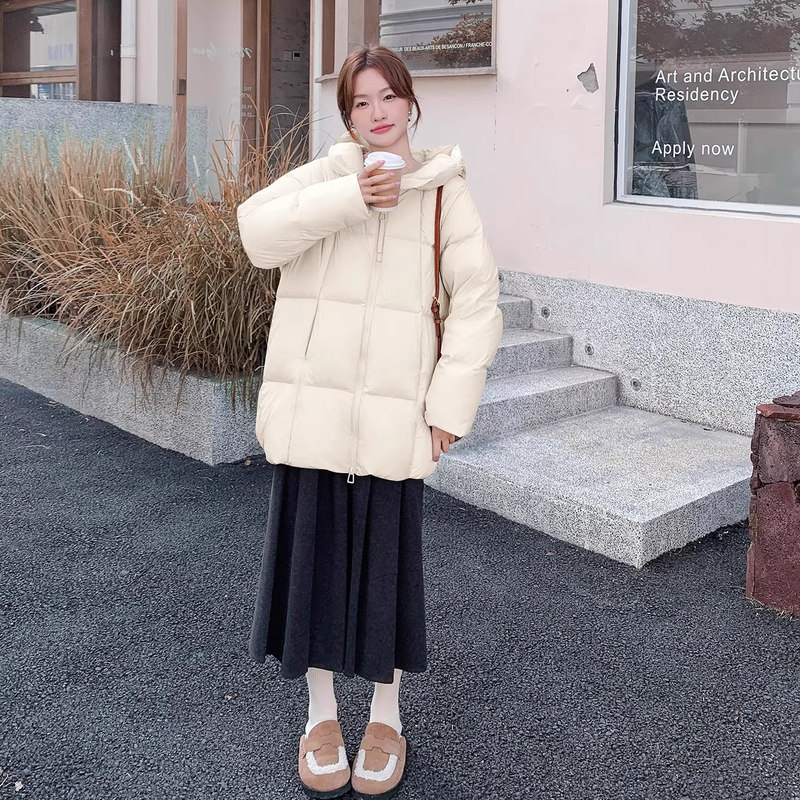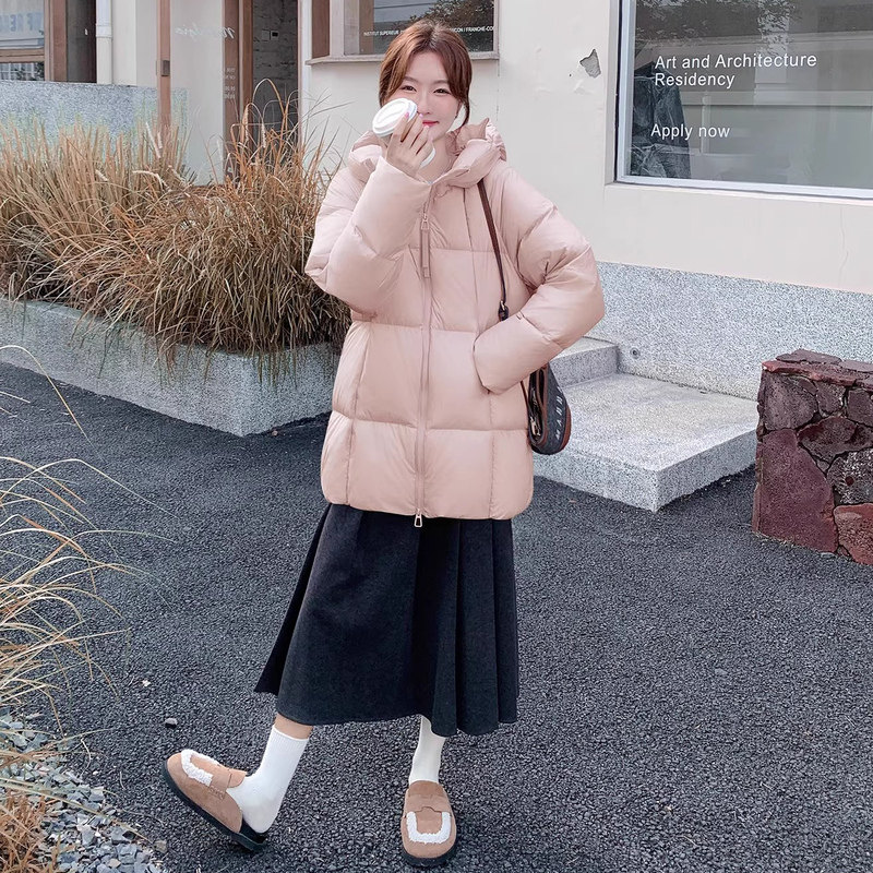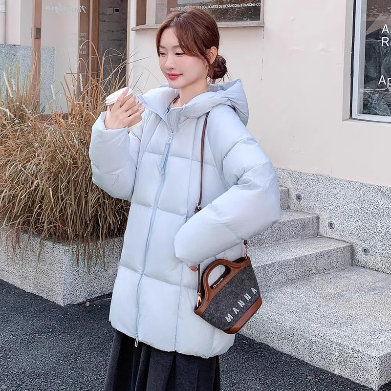 保暖棉袄面包服 爆款 LE真维斯蓝色加厚连帽棉服女2025新款 冬中长款